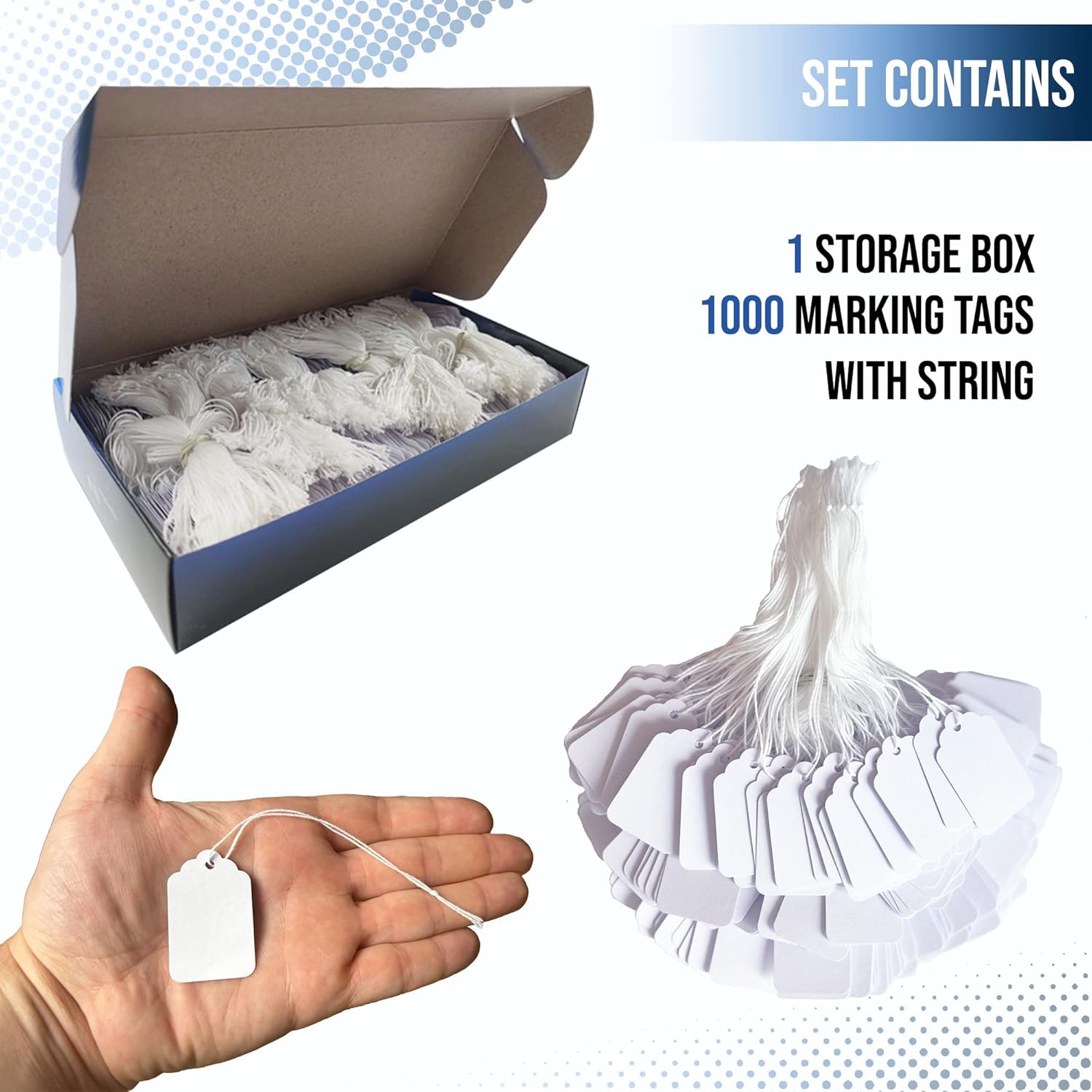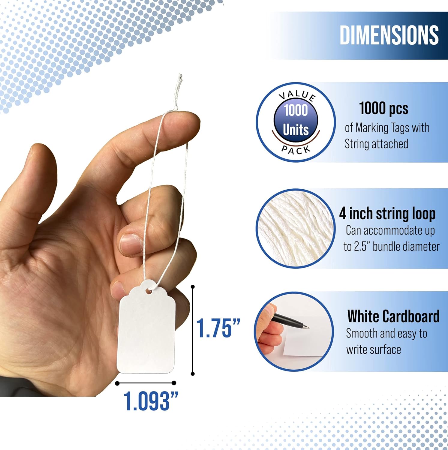 1000 Pcs White Price Tags with String Attached, Price Labels, Display Tags, Strung Tags, Hang Tags for Product, Jewelry, Clothing,Yard Sale, Garage Supplies, Pricing 1.75 x 1.093 inch