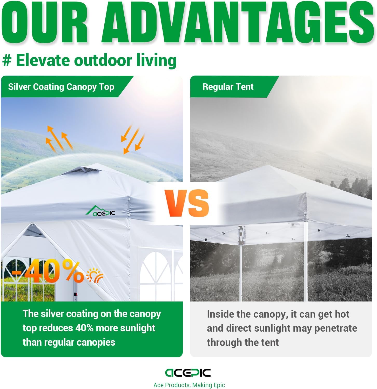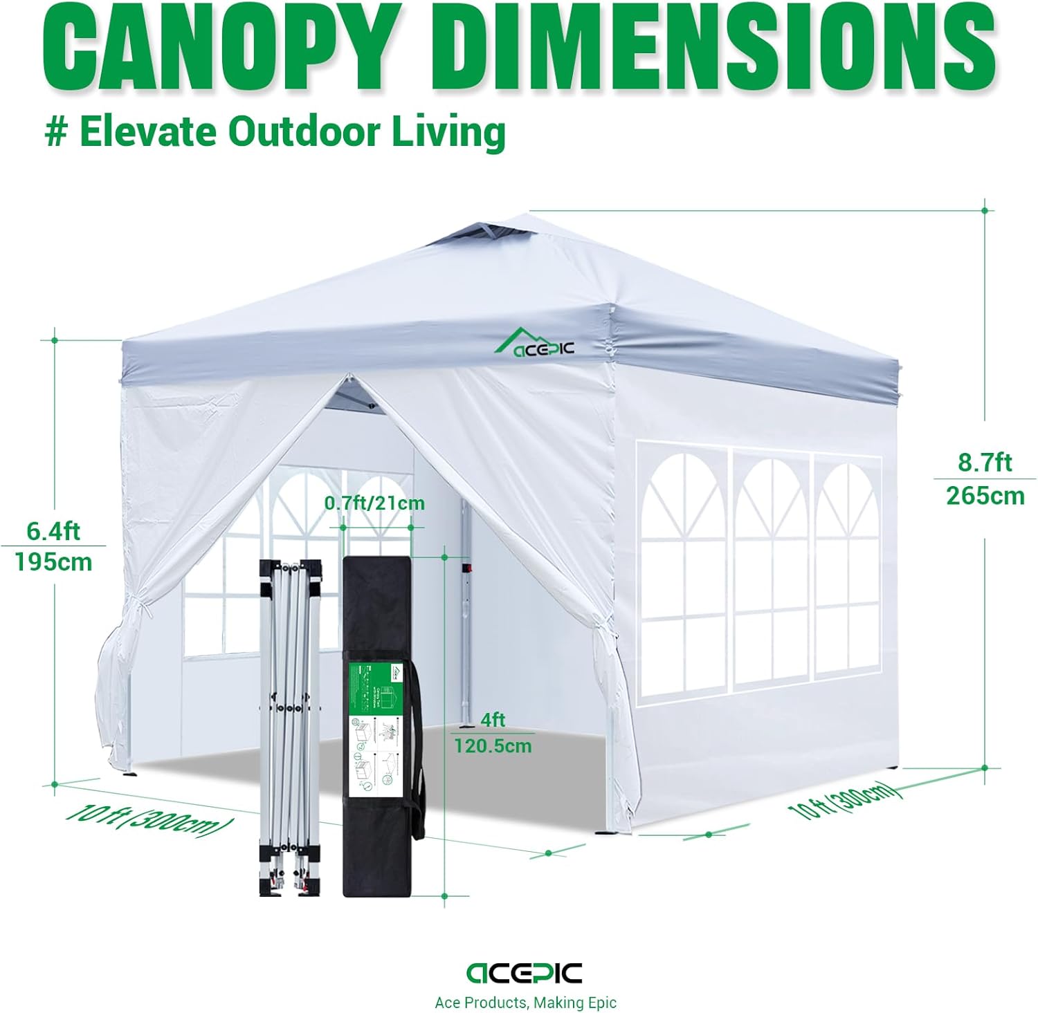 【Easy Installation】 Acepic 10×10 Portable Canopy Tent is designed for user convenience,easy to set up and take down in minutes without the need for complicated tools.