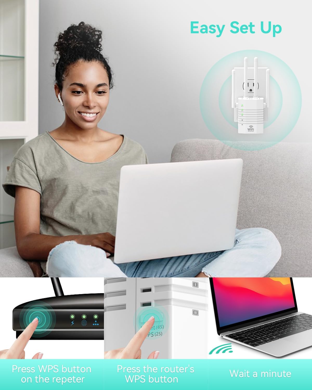 One-Tap Setup: Setup on virtually any device via the browser website (192.168.188.1). Or press the WPS button to easily extend wireless coverage. Internet booster, 4 external antennas, and advanced central processor better extend wireless signal to hard-to-reach areas.
