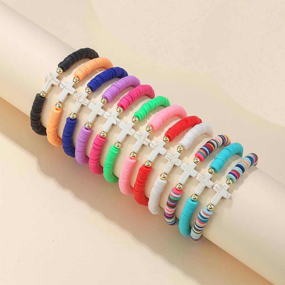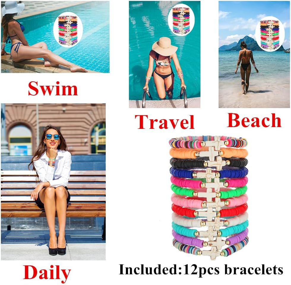 12pcs Friendship Bracelets Beaded Bracelets Heishi Bracelet Cute Bracelets Stack Vinyl Clay Disc Bead Surfer Stretch Summer Beach Bracelets For Women Preppy Bracelets