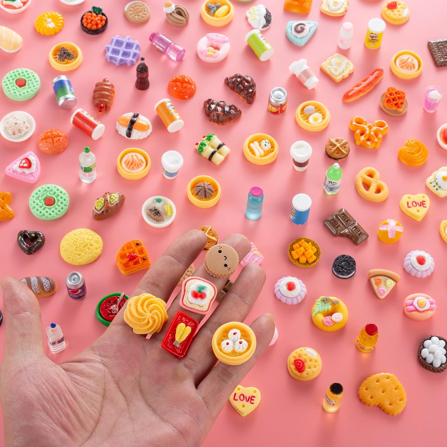 PACKAGE INCLUDES – 2 toy shopping cart(red, bule) + 2 shopping baskets + 1 Dollhouse Refrigerator +1 Cash Register + 1 Shelves + 100 pieces miniature food + 50 Micro Bottles + 1 pack of ice cubes + 6 bundle of paper currency model . enough quantity and styles that can help to relieve stress, develop creativity and imagination, bringing you lots of fun.