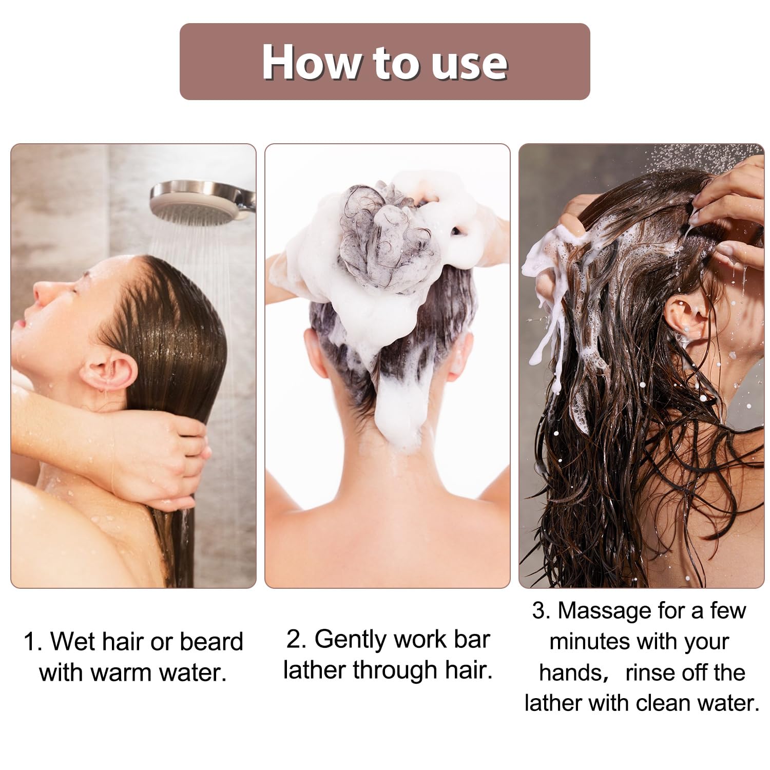 🧼【Easy to Use】Wet your hair, apply hira dark shampoo stick directly to wet hair and Lather With foam net. Massage gently into scalp for 2-3 minutes. Then rinse thoroughly, and finally use conditioner to lock in moisture.