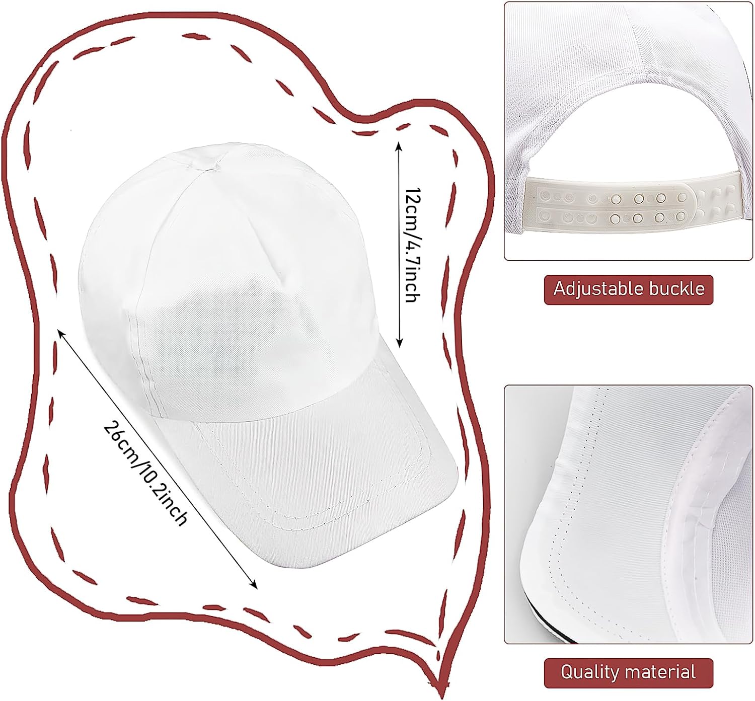 20 Pack White Kids Hats, White Baseball Caps Baseball Hats Bulk DIY Sun Hat with Adjustable Back Strap for Painting Hiking Camp Sport Outdoor Activities