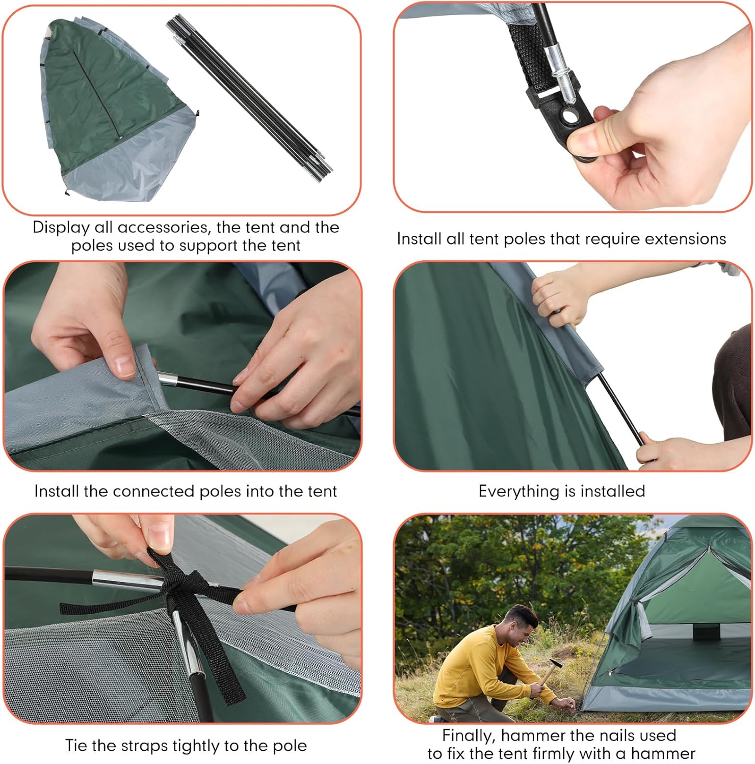 Easy Assembly: setting up the tents for camping is a hassle less process, taking only a few minutes to complete; This convenient feature allows you to quickly pitch the tents and focus on enjoying their outdoor adventures without the frustration of complex assembly procedures