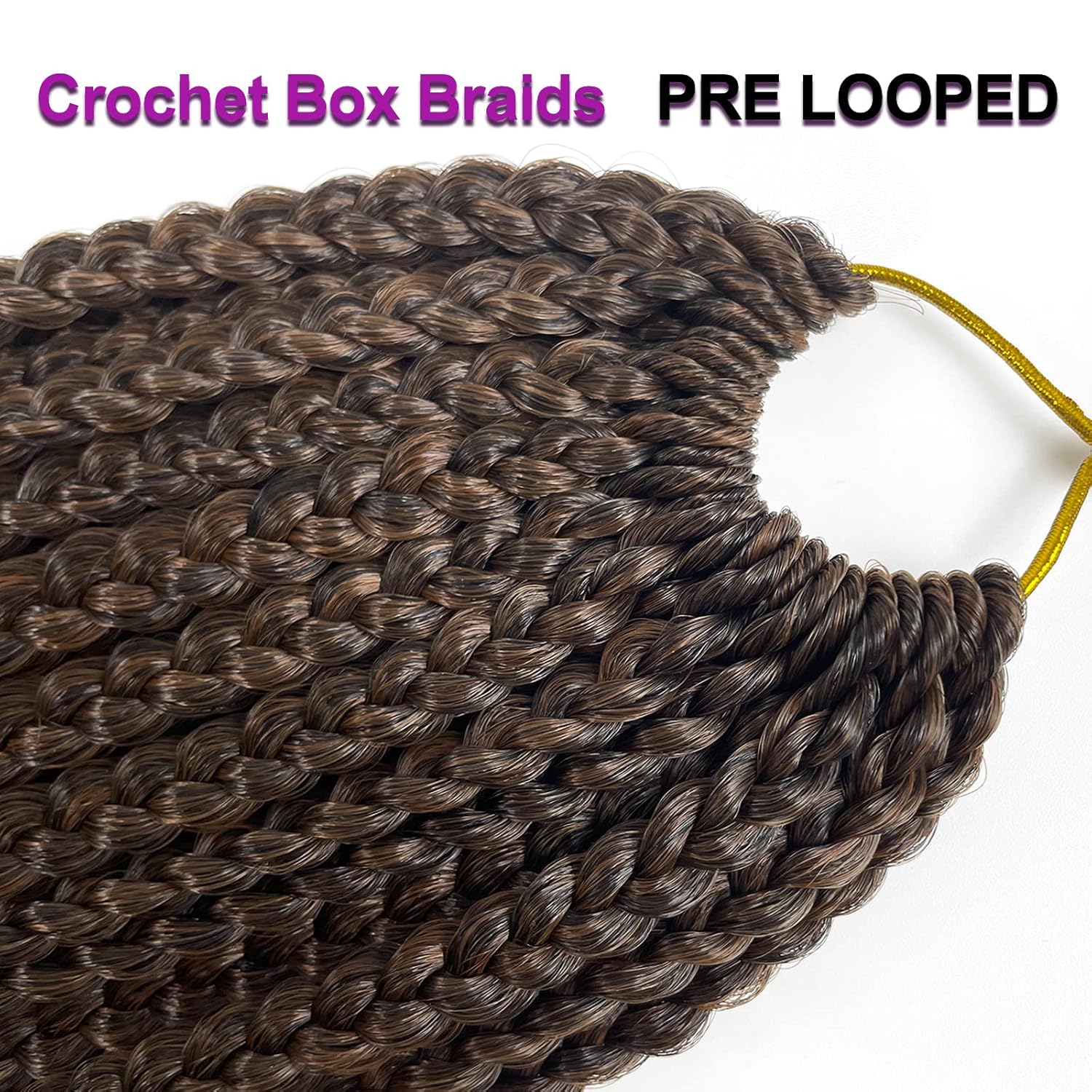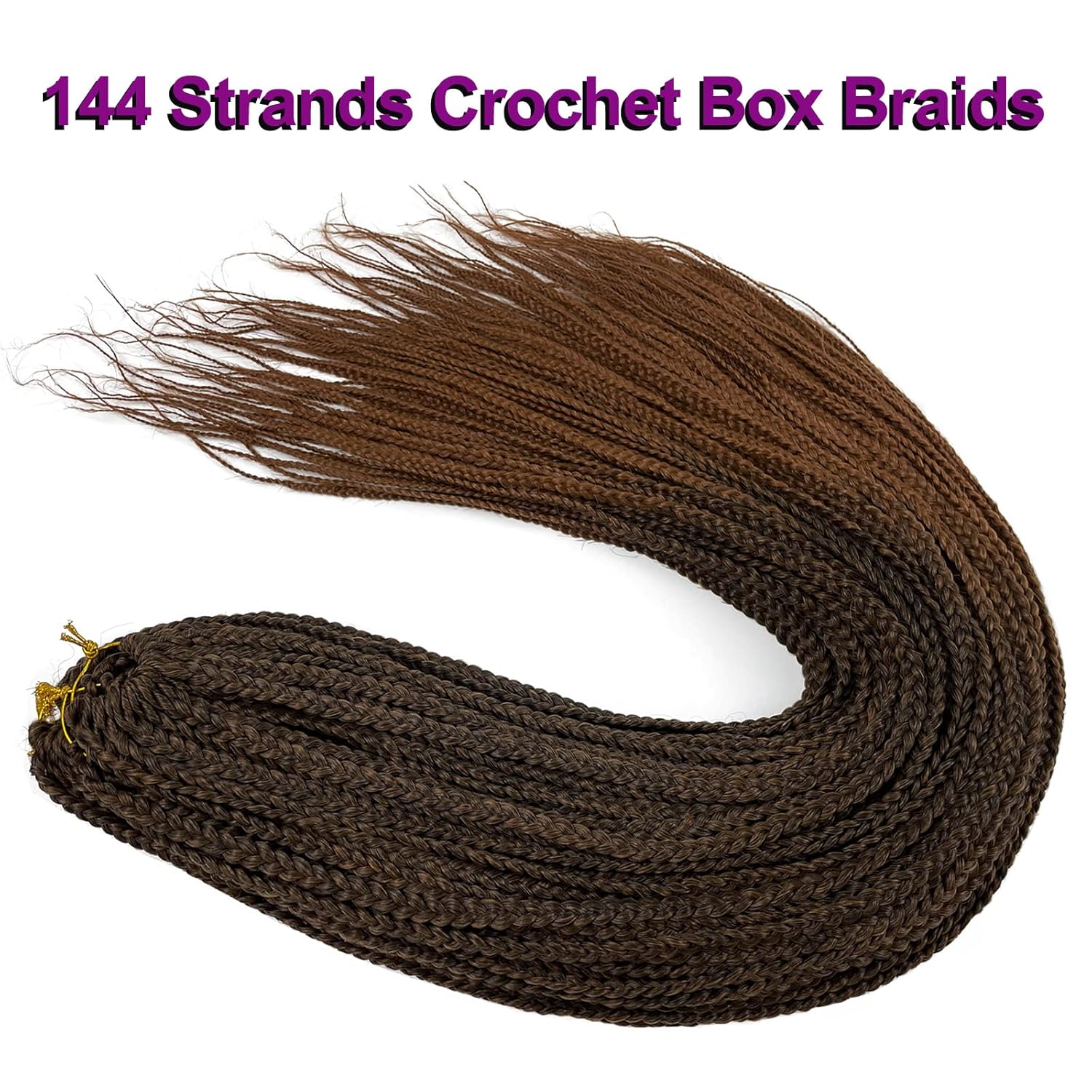 30 Inch Long Box Braid Crochet Hair 144 Strands Crochet Box Braids Pre Looped Box Braids Crochet Braids T1b/30 Brown Box Braids Crochet Hair (30 inch box braids 6 packs, T30)