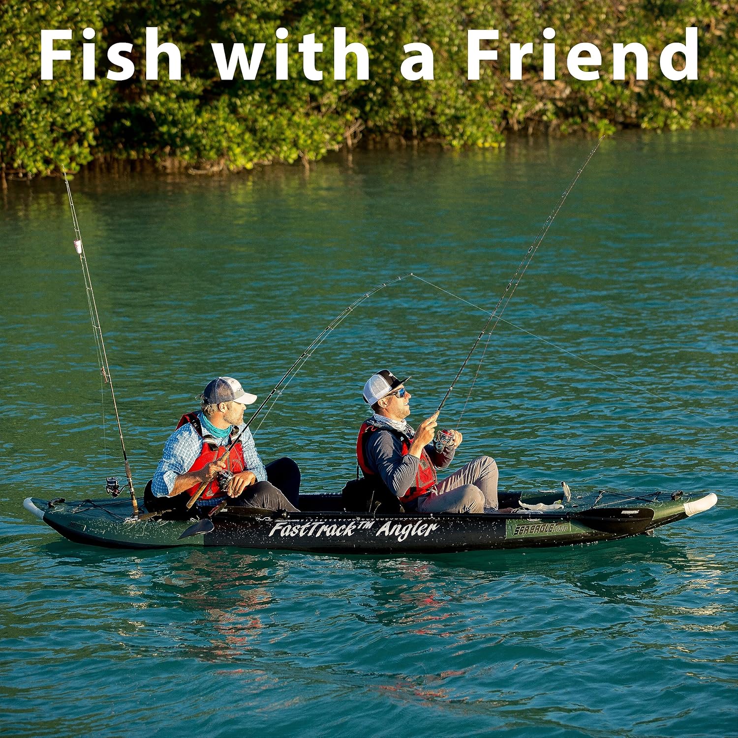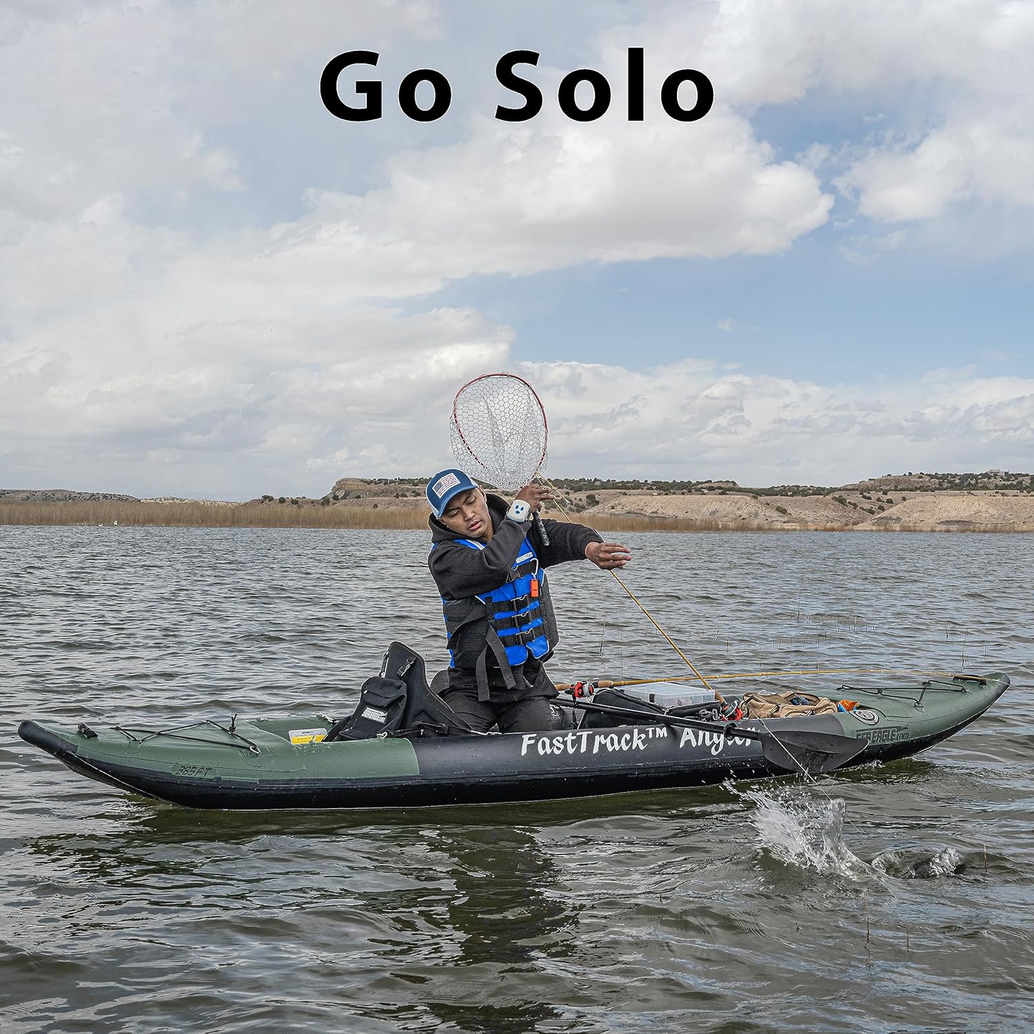 385FTA FastTrack Angler 1–2-person Inflatable Hunter Green Fishing Kayak-External Rigid Inflatable Keel, Rugged Hull Material, Non-Slip Padded Floor, Stitch Floor w/Seat(s), Paddle(s), Pump & Bag