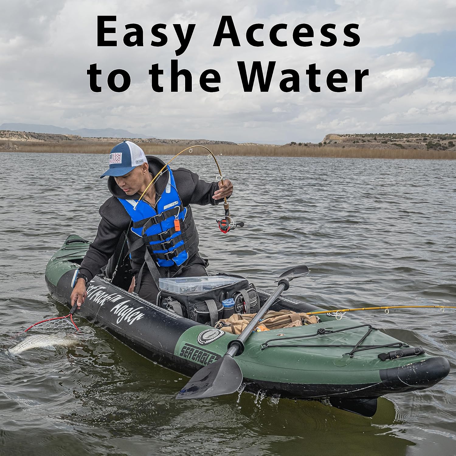 Rugged inflatable fishing kayak designed by and for fishermen who wish to adventure outside traditional methods to catch more fish and bigger fish!