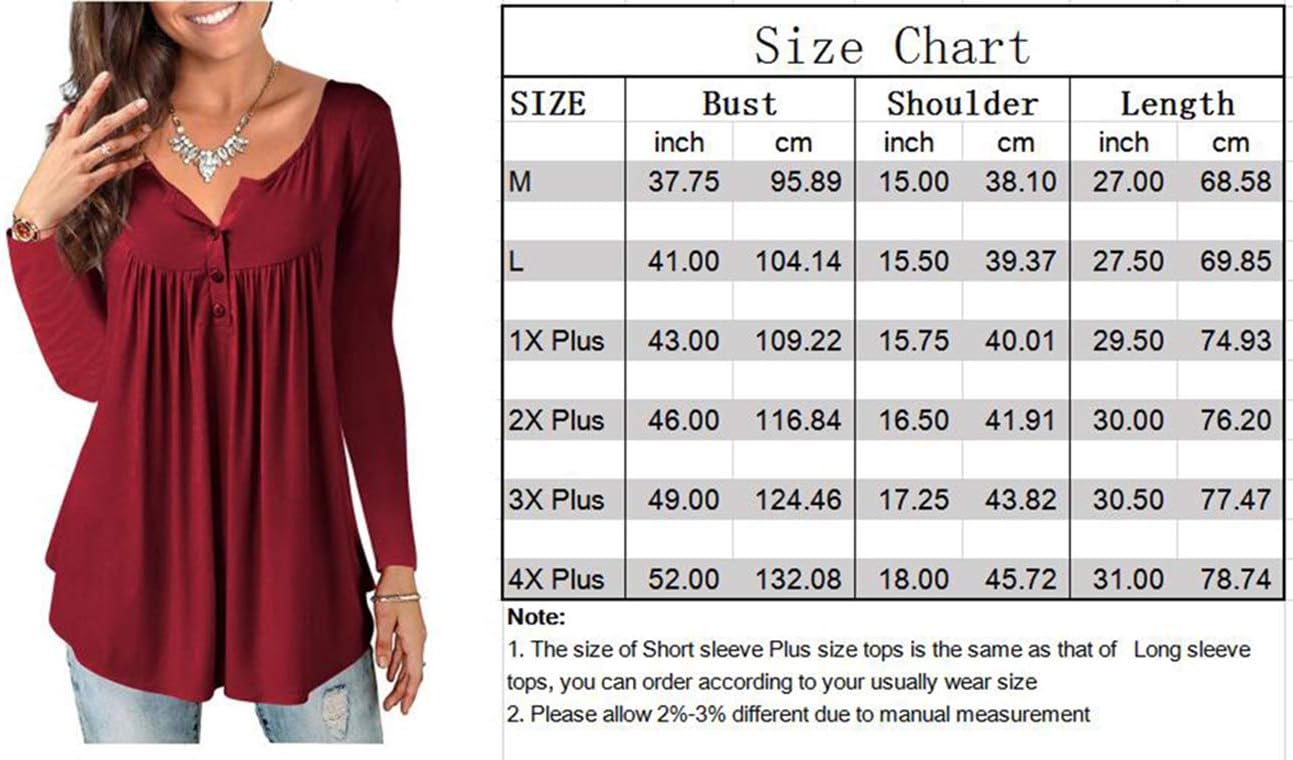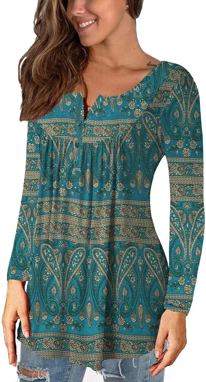 a.Jesdani Plus Size Tunic Tops Long Sleeve Casual Floral Printed Henley V Neck Shirts for Women