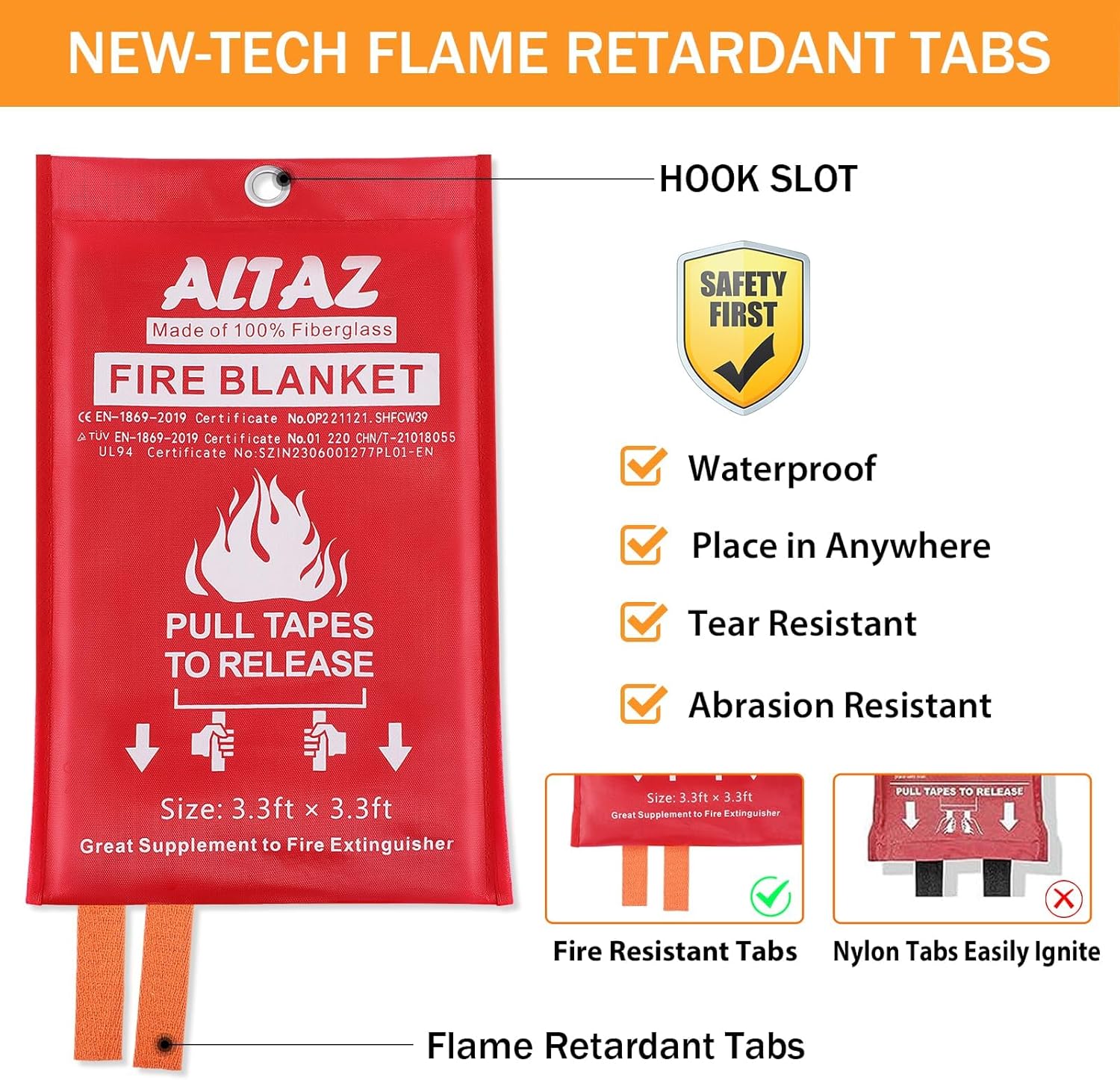 Altaz Emergency Fire Blanket for Home Kitchen – 39.4″x39.4″ Flame Suppression Fiberglass Fire Blankets for Camping, Grill, Car, Office, Warehouse, Fireplace, Survival, Safety (4 Pack)