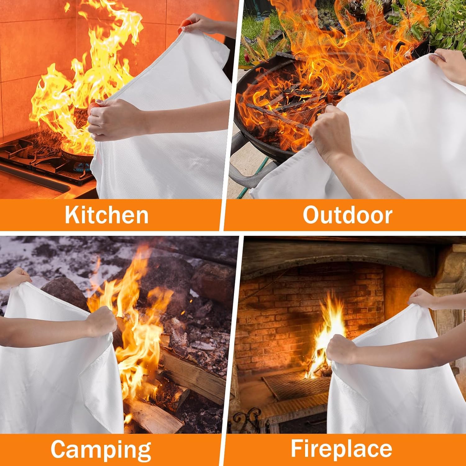 🔥【NO MESS IN KITCHEN】Put out small fires without a mess, no more traditional extinguishers. Our survival fire blanket for home and kitchen cut off oxygen supply to flames, tackling liquid, grease, and various fire types. Every household needs it. Hang the kitchen fire blanket on the wall of the house or boat. It is a vital addition to your fire safety survival kits.