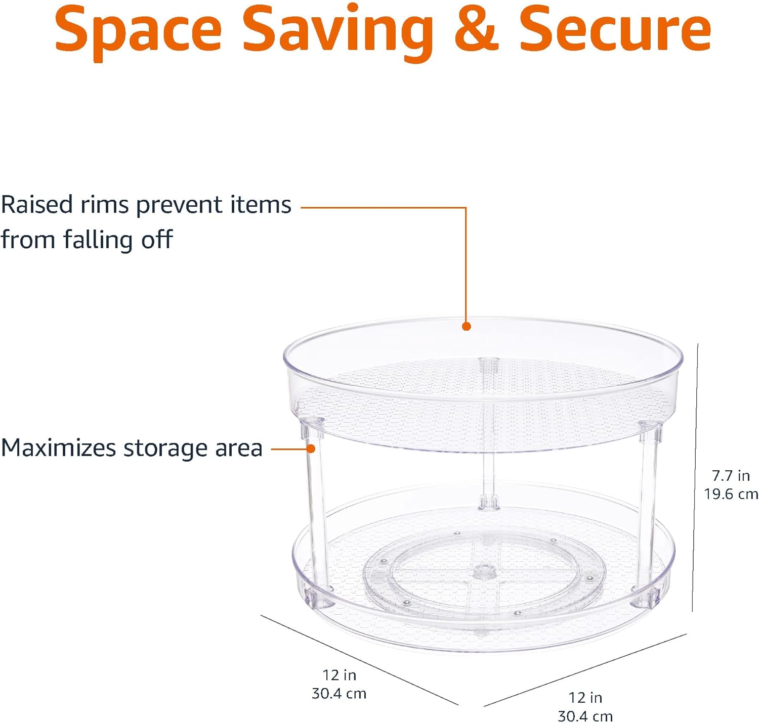 Amazon Basics 2 Tier Clear Lazy Susan Turntable Organizer, 12-Inch