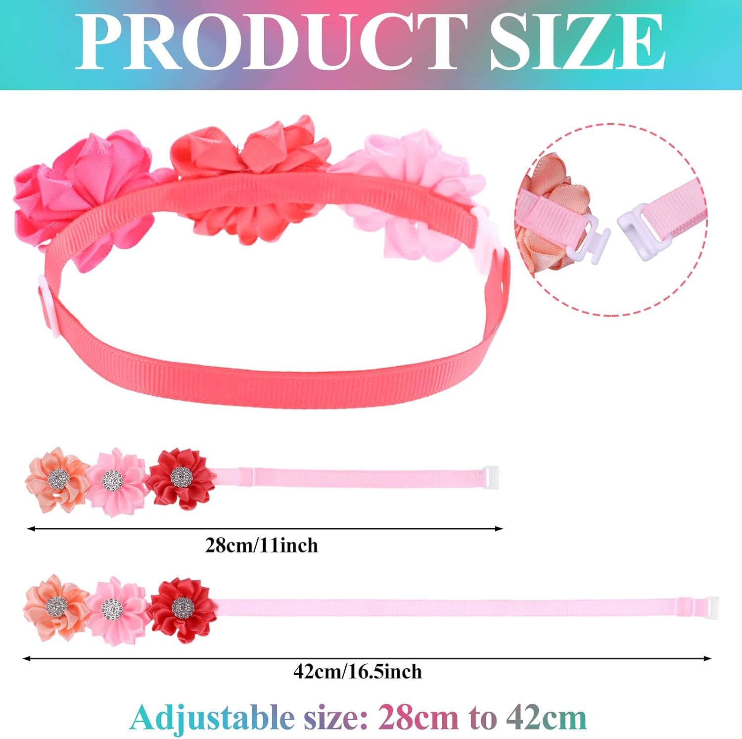 Adjustable Puppy Collars: The perimeter range of the dog flower bowtie collar is from 28 -42 cm/ 11 – 16.5 inches. The plastic adjustable buckle design can adjust the length according to dogs or cats. And the unique plastic lock design makes it easy to put on and take off