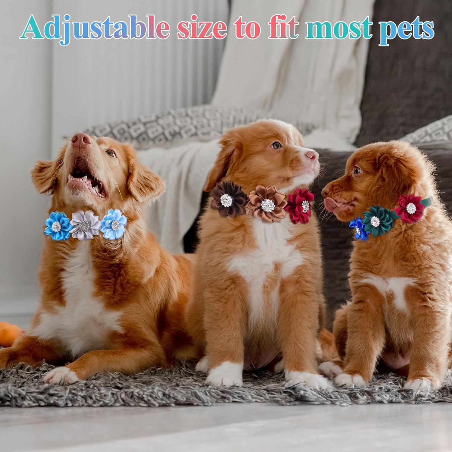 Attractive Appearance Design: These pet collar decorations are adopted flower shape designs with diamond decorations in the center. They look like three flowers blossoming on the neck of the pet, charming and popular
