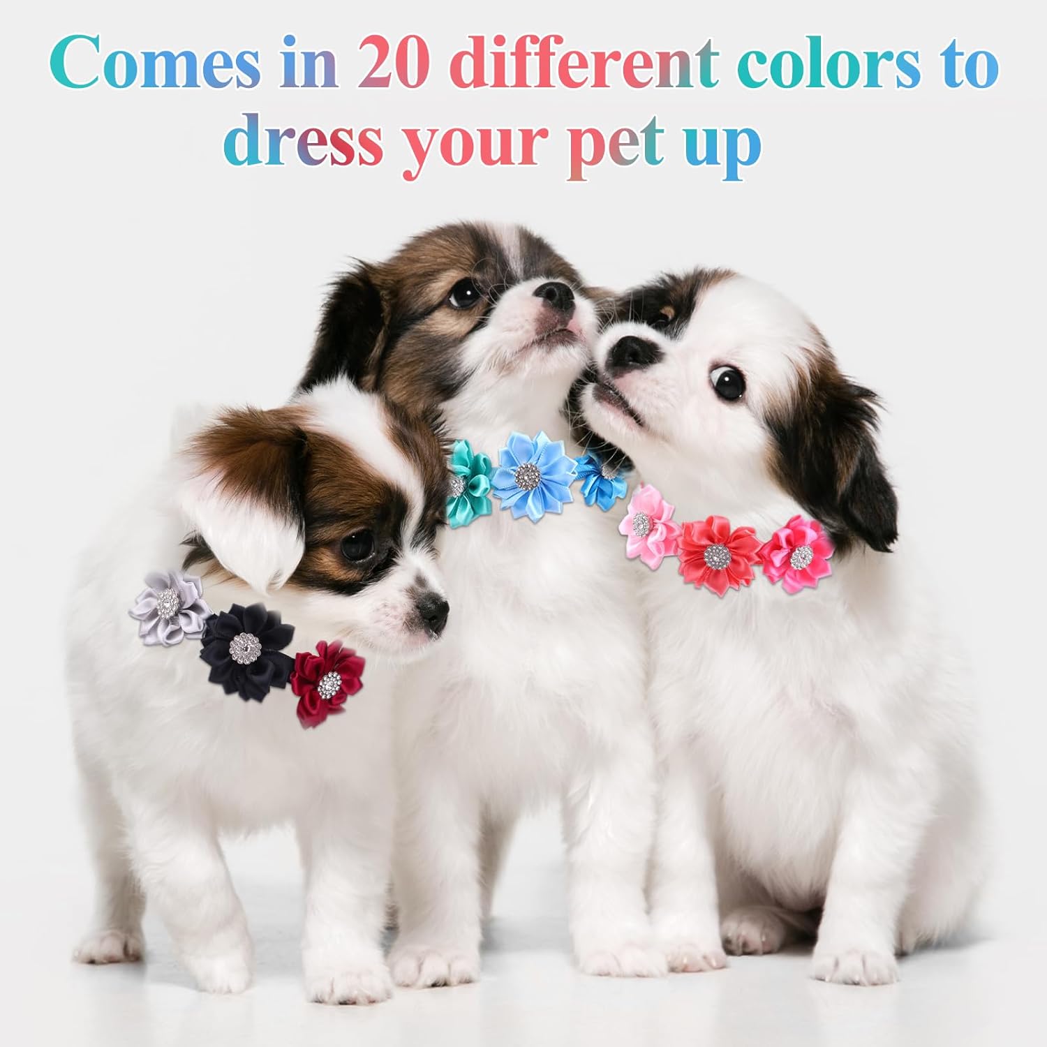 20 Pack Dog Bow Tie Dog Flower Collar Diamond Dog Accessories Pet Flower Bows Small Dogs Cat Puppy Bowtie Collar Dogs Bowties Pet Supplies(20 Color)Features: bow ties for dogs, bowtie, dog flower collar diamond dog accessories, diamond flower dog bows, pet flower bowties, flower collar diamond pet accessoriesFlower shape decorated with diamond, 20 colors in total, enough to meet daily demands.Adorable and novelty, ideal fun decorative collar set for pets.A Pet bow tie is the best gift for a favorite pet.Can dress up most pets such as cats, dogs, birds, rabbits, and so on.Specifications:Material: polyester+plastic+rhinestoneColor: 20 different color, as shownPackage includes:20 x dog diamond flower bow tiesWarm Tips:1.Please allow slight size errors due to manual measurement.2.Due to differences between monitor displays, actual color may vary slightly from image.