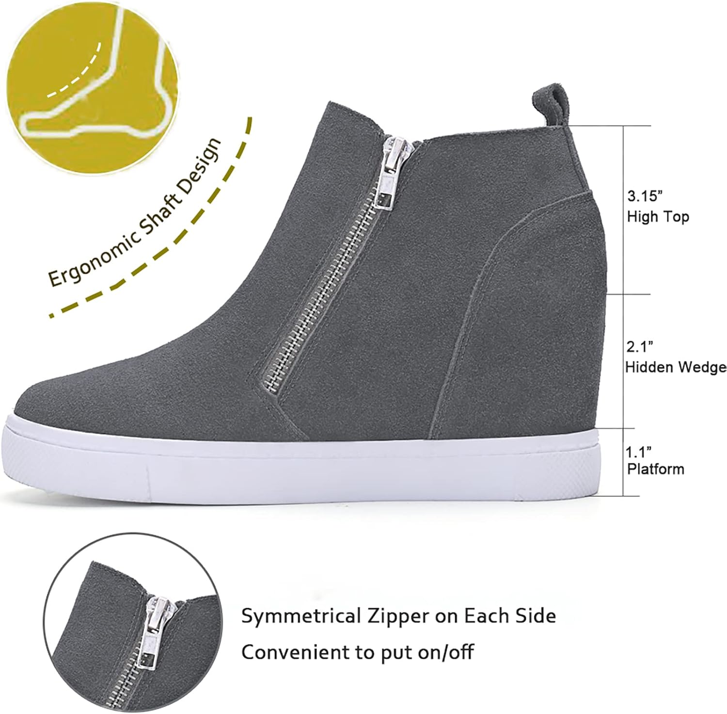 Athlefit Women’s Wedge Sneakers Hidden Heel Platform Wedge Booties Hidden Wedgie Sneakers