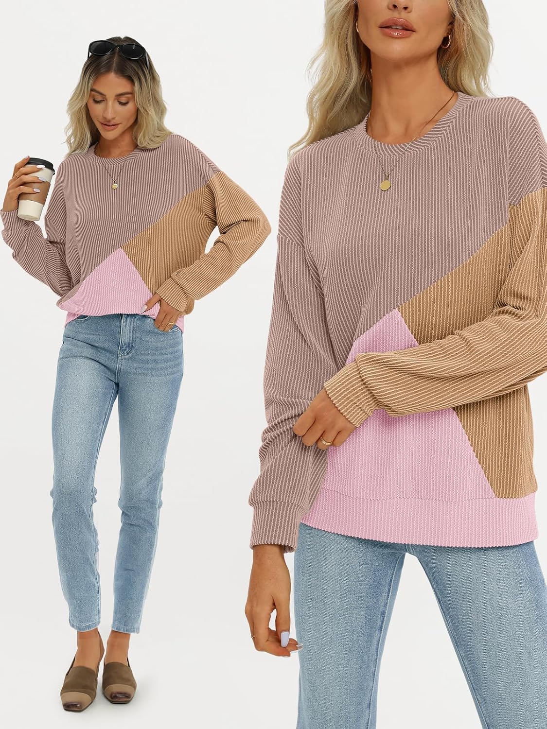 AUTOMET Womens Color Block Long Sleeve Crewneck Sweatshirt 2024