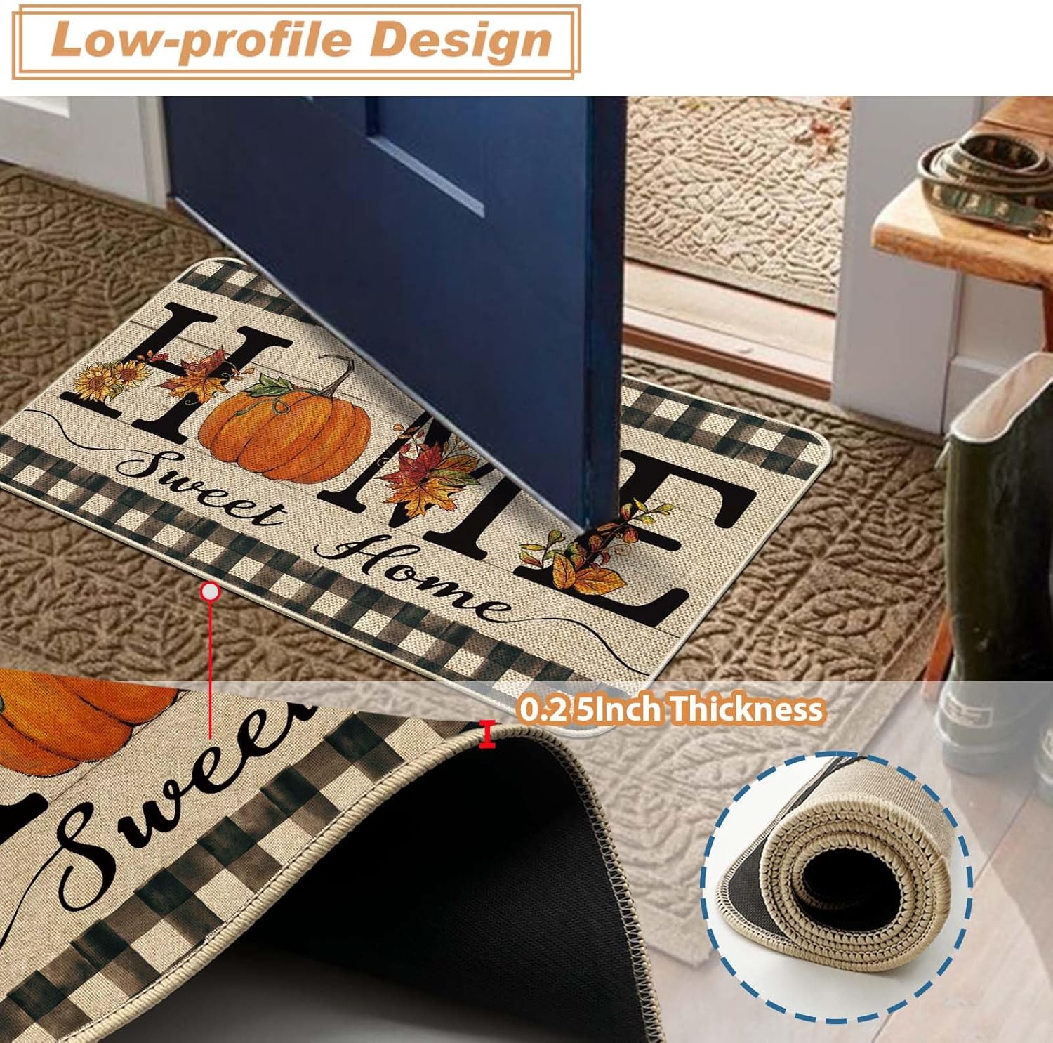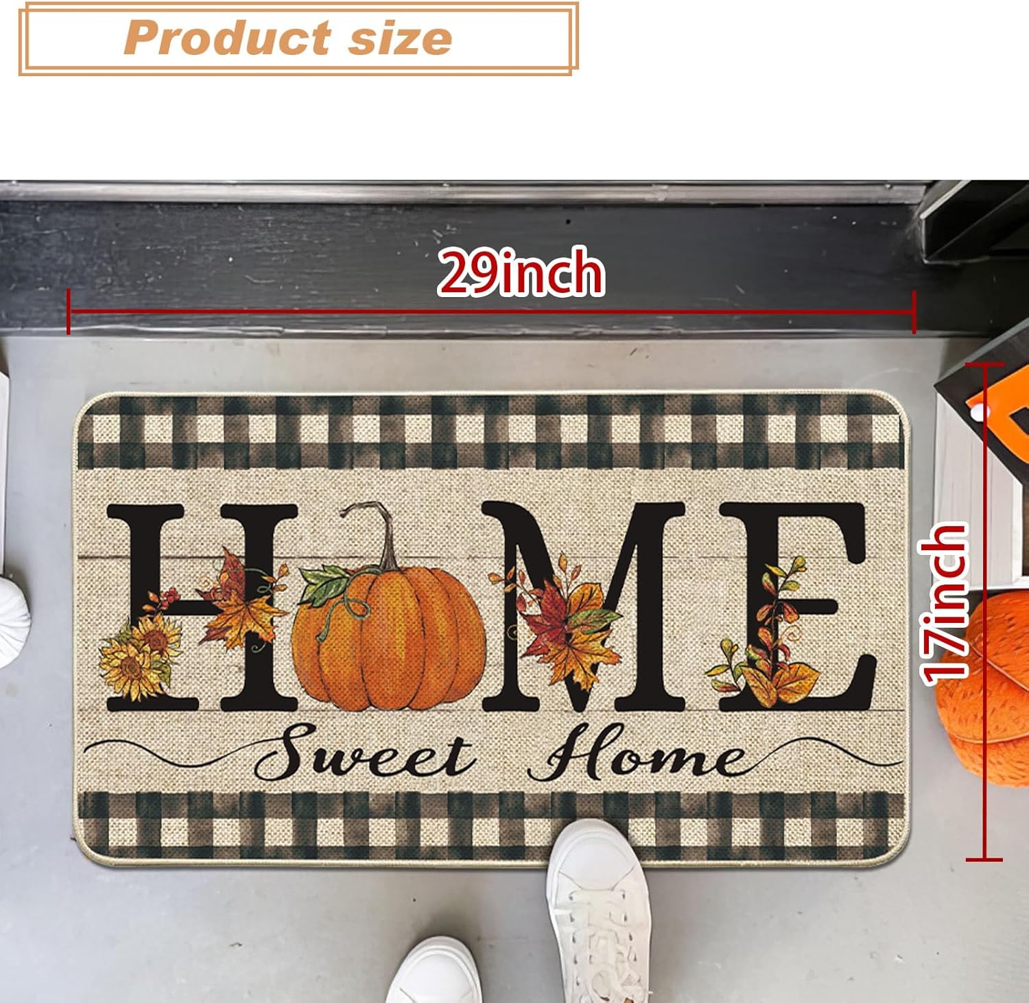 Unique Design And Right Size: Fall Home Sweet Home doormats with stylish designs to add personality and style to your entryway; Our holiday doormats for indoor and outdoor make a beautiful addition to your home. Fall door mat is just the right size 17 x 29 Inch, and is 0.25 Inch thick providing a lower profile to prevent tripping and provide an easy door clearance