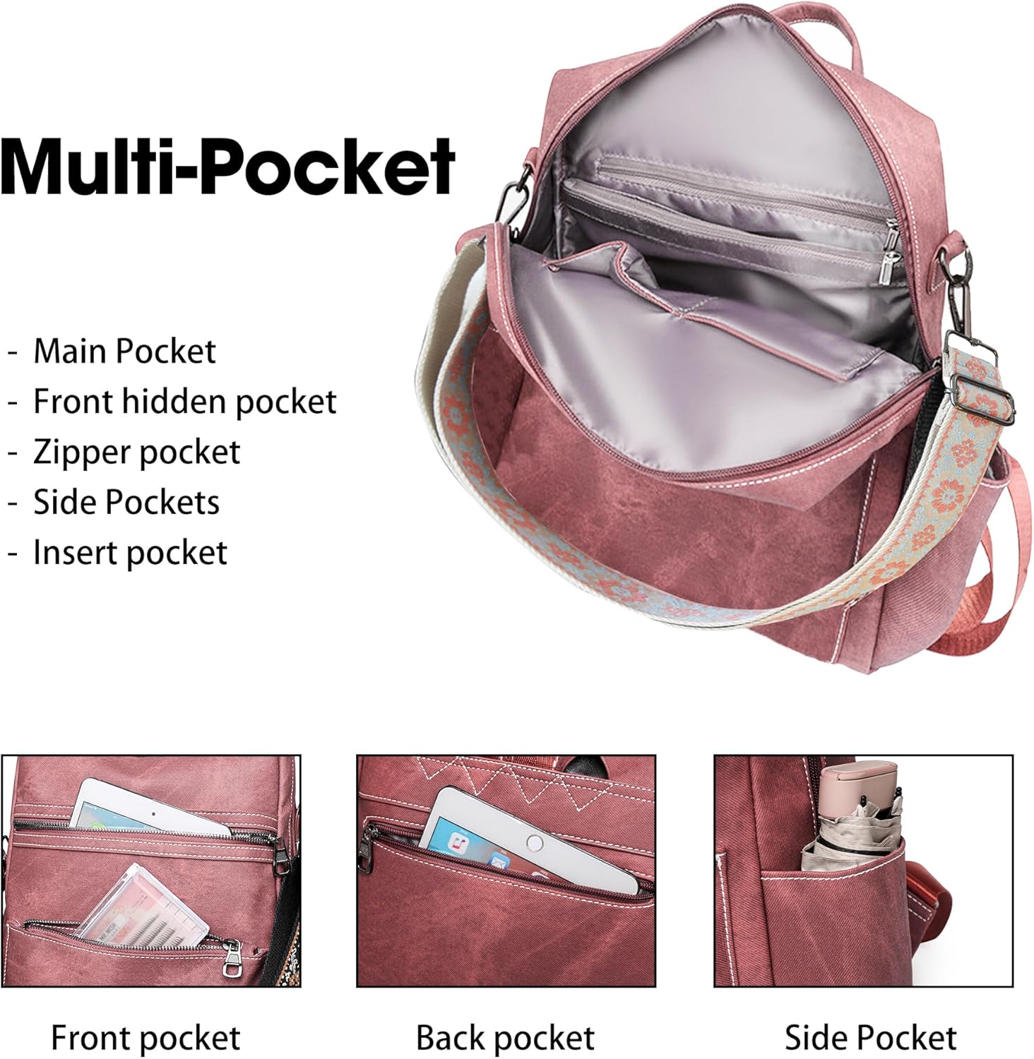 Backpack Purse for Women Leather Handbag Ladies Fashion Shoulder Bag Designer Convertible Travel Backpack Pink