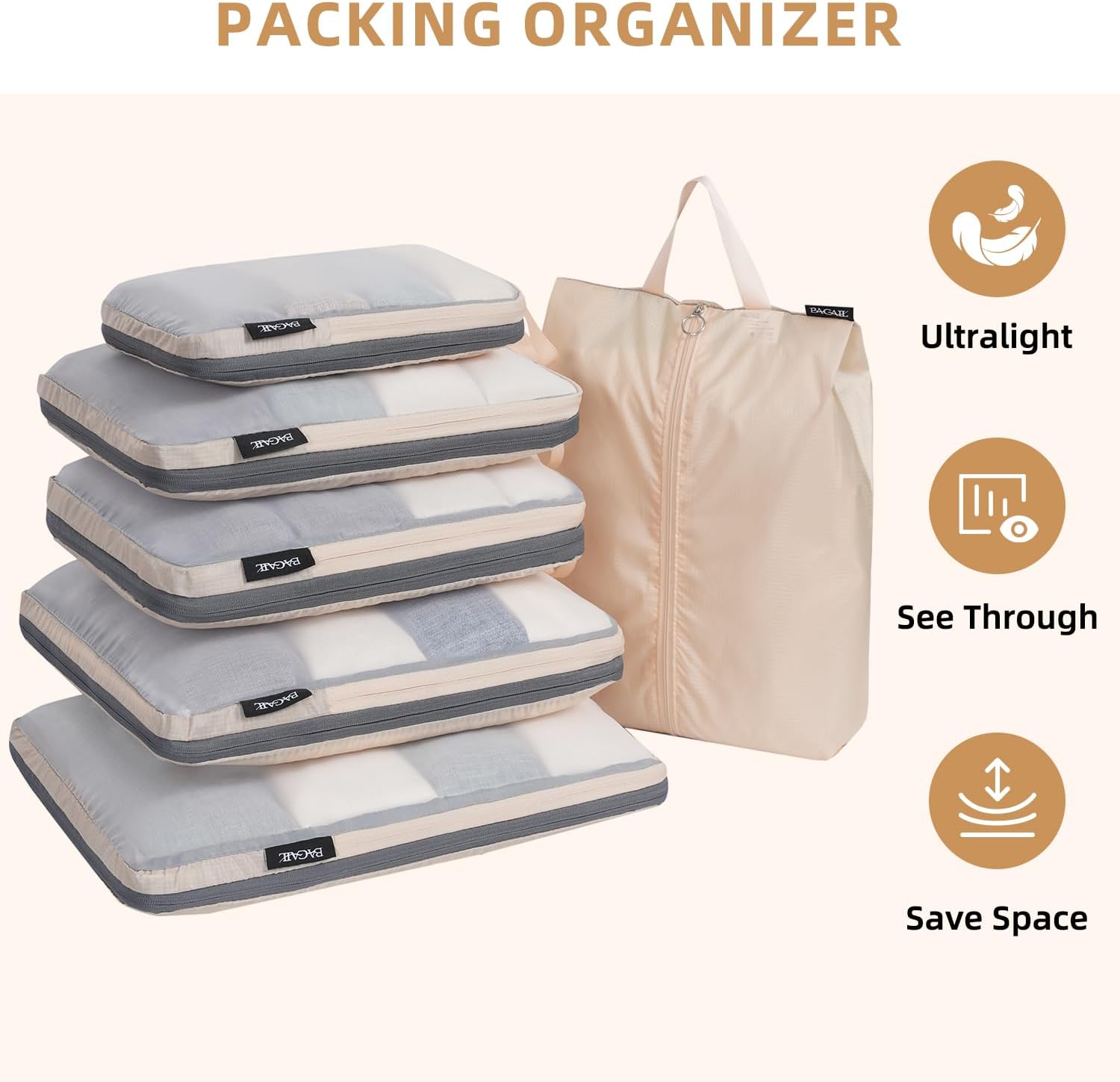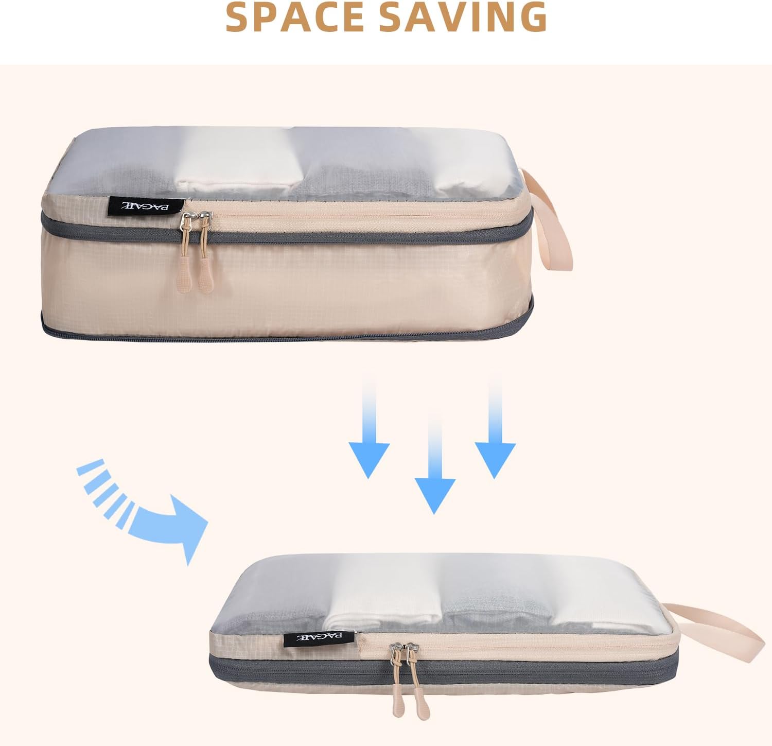 BAGAIL 4 Set/6 Set Ultralight Compression Packing Cubes Packing Organizer for Travel Accessories Luggage Suitcase Backpack(70D FullMesh 6Set Cream)