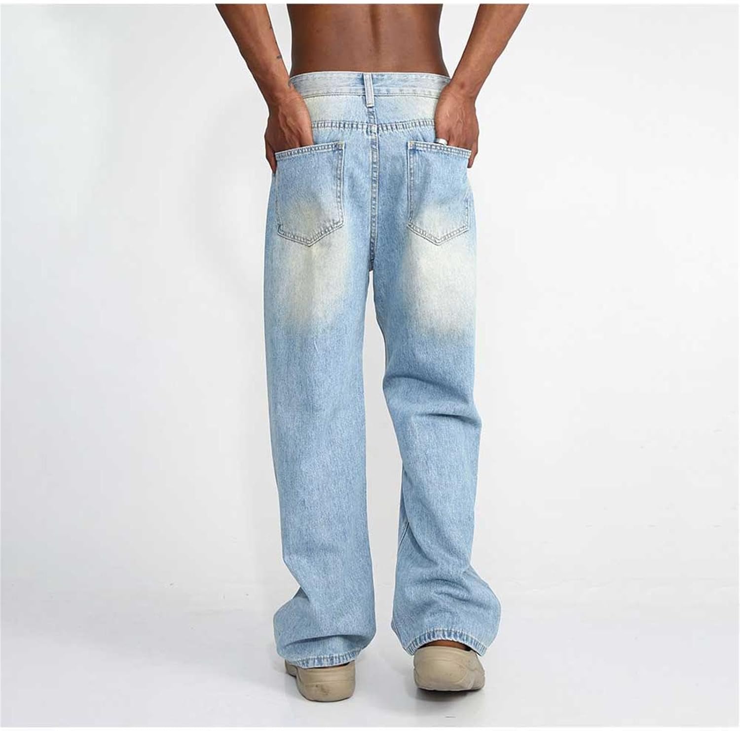 Mens baggy jeans retro joggers pants you can wear anything you want, straight legs with a simple T-shirt, sweatshirt or tank top, are very fashionable, very street feel and personality. Jeans that can be worn all year round.