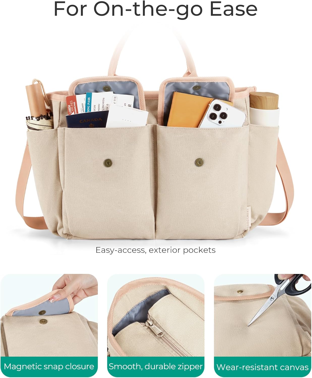 BAGSMART Canvas Messenger Bag, Vintage tote bag with Zipper, Handbags Bag Crossbody for College Travel Work