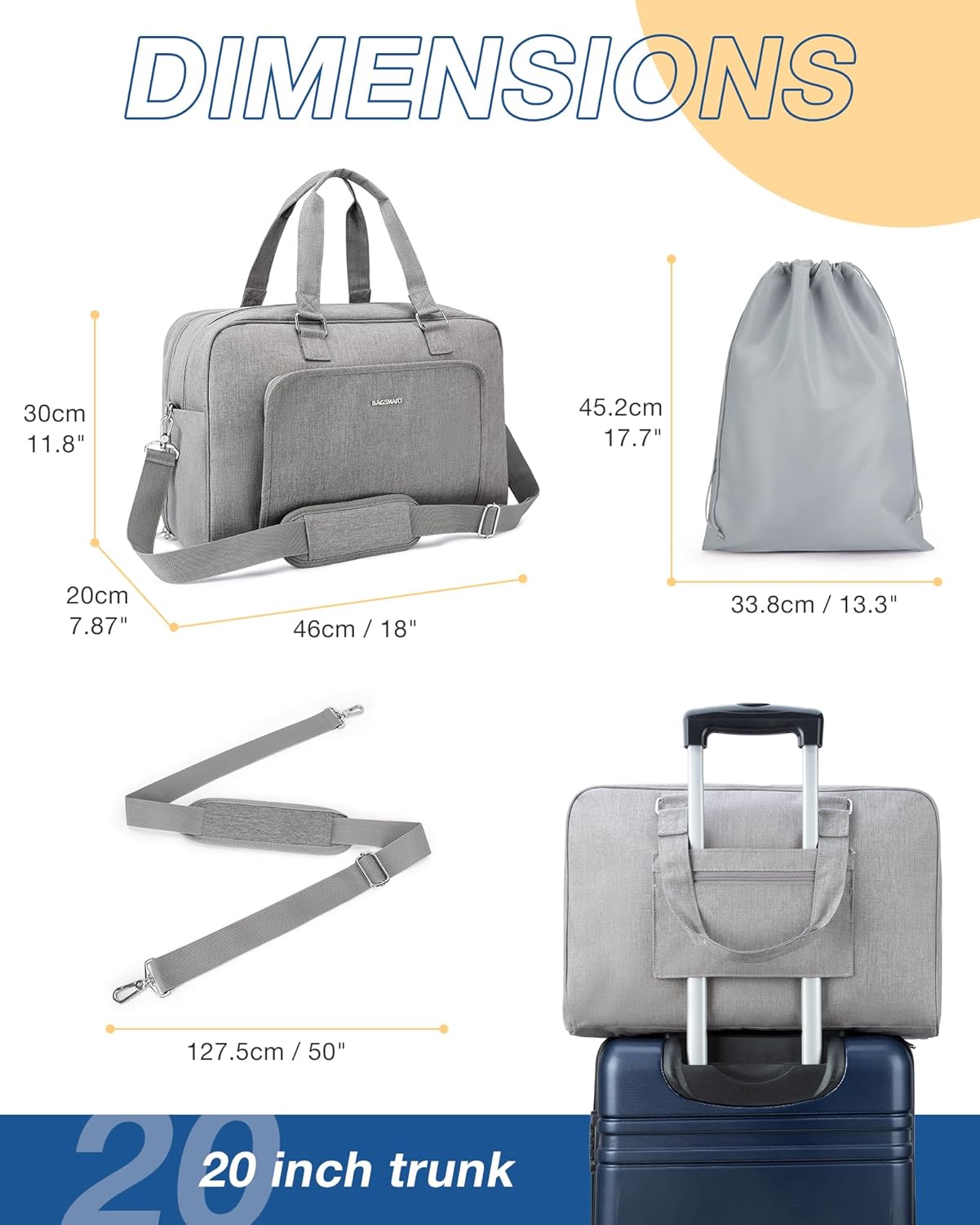 Customers like the roomy, travel-friendly, and durable aspects of the duffel bag. They mention it has multiple pockets, fits more than they think it would, and complements the BAGSMART luggage collection. Some appreciate the size, style, and weight.