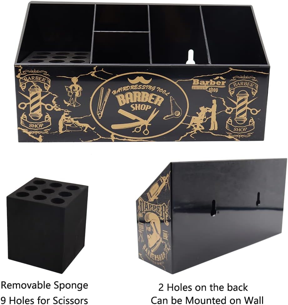 Space Saving & Wall Mounted: This barber supply tool organizer has 5 compartments of different sizes and a detachable sponge liner with holes for special shears scissors storage. This barber organizer rack has two holes on the back, which can be wall mounted. Size: 10.6 x 3.15 x 5.5”(L x W x H). It’s handy to keep out but big storage.