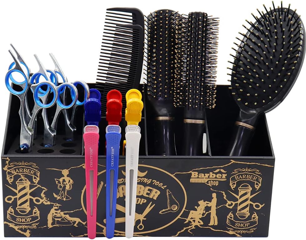 A Must Have for Stylist: This scissor holder will help organize the clutter on your styling station and keep your work surface neat. Freely store assorted styling tools together in the box. A must have for any barbers, hair stylists, pet groomers, hairdressers.