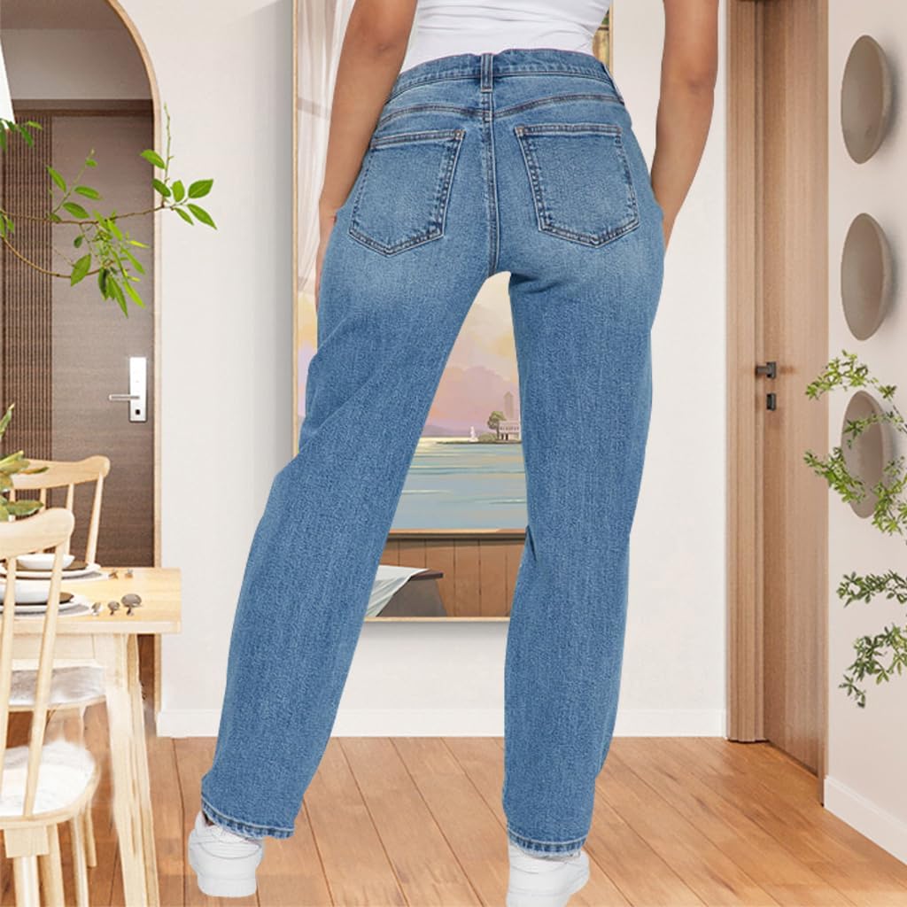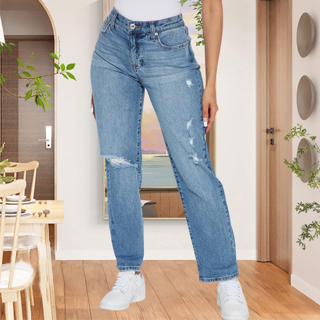 BessCops Women’s Boyfriend Trendy Jeans Ripped High Waisted Straight Leg Loose Fit Distressed Zipper Fly Hole Denim