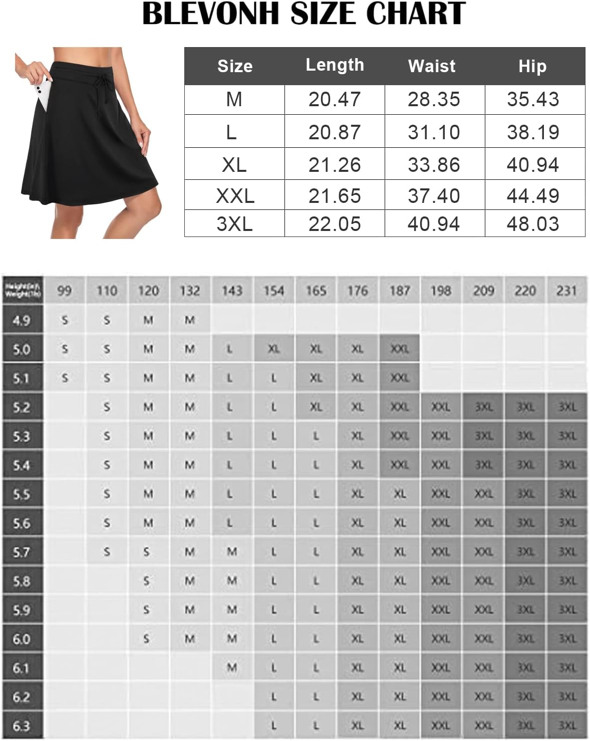 BLEVONH Women’s Golf Skirt 20″ Knee Length Skorts Skirts Drawstring Waist Tennis Skirts with Pockets