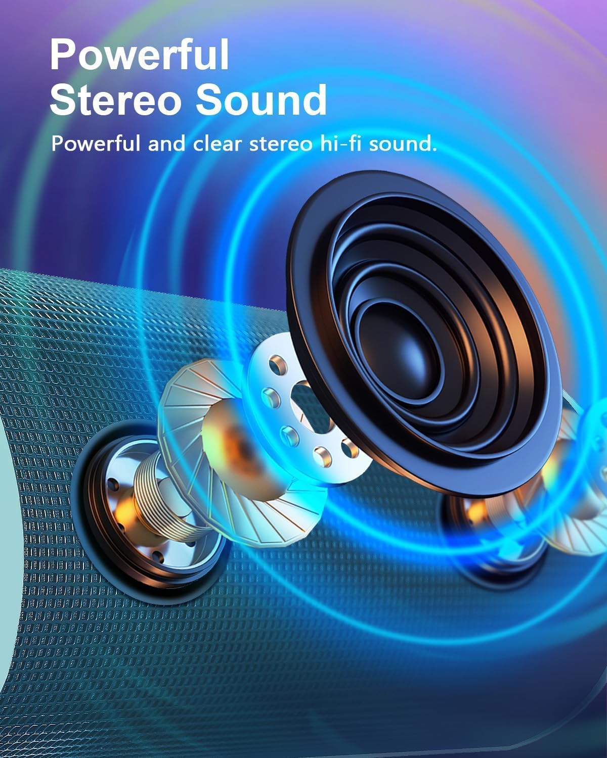 Immersive Clear Sound & Dual Playing : Crafted for distortion-free sound, this wireless Bluetooth speaker uses unparalleled 15W HiFi sound quality and advanced technology to deliver powerful, balanced sound with minimal distortion. You can connect two speakers together to create an immersive, high-fidelity stereo experience, filling any room with up to 30W(15W*2) of powerful sound. Perfect for gaming, music and movie playback.