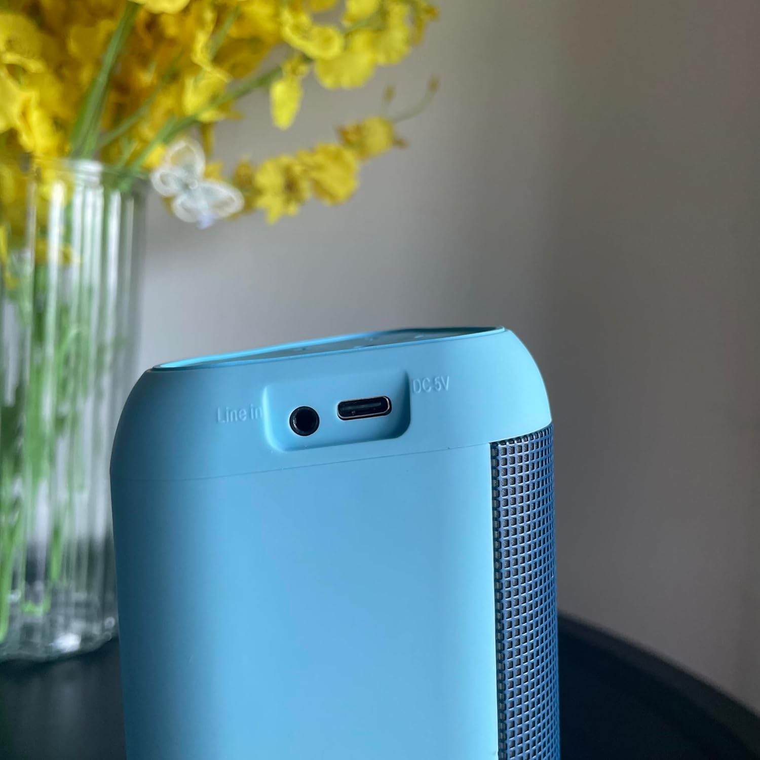 A Truly Portable Speaker : This is a lightweight wireless portable speaker, 7.1 inches high, 2.7×2.3×2.7 inches of bottom edge length, weighing only 0.79lb, with Type-C charging port and auxiliary-in port(charge cable and AUX cable are included), you can carry it anywhere outdoors and indoors including camping, hiking, biking, office, etc.
