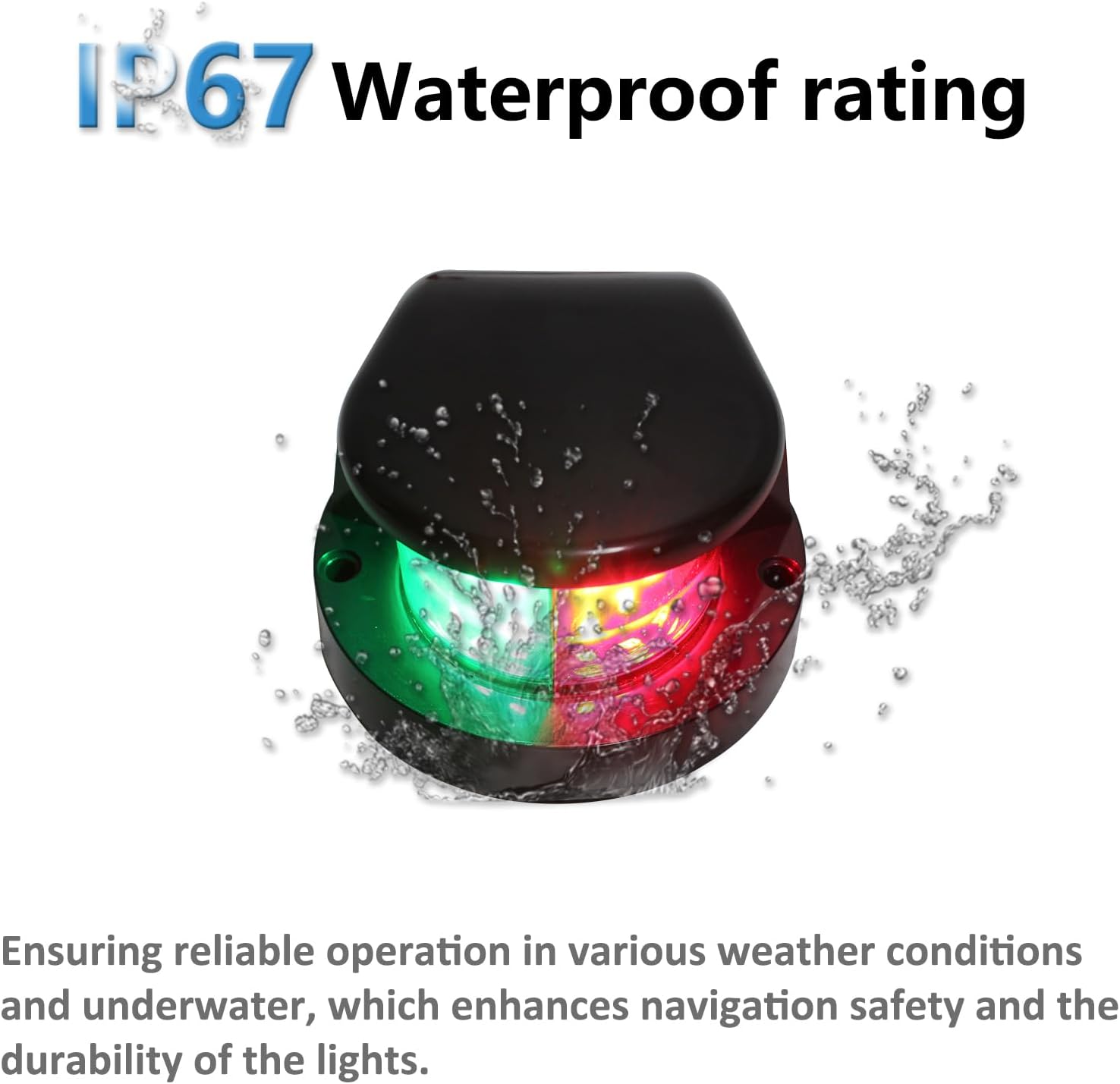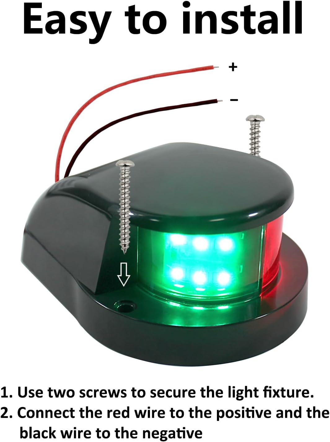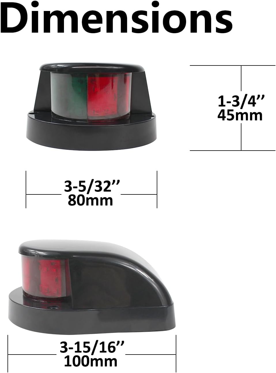 Dual-Color Lighting – This boat navigation light features built-in optical lenses for red and green lights, providing superior visibility at night and meeting the U.S. Coast Guard’s 2-nautical-mile visibility requirements for safe navigation.