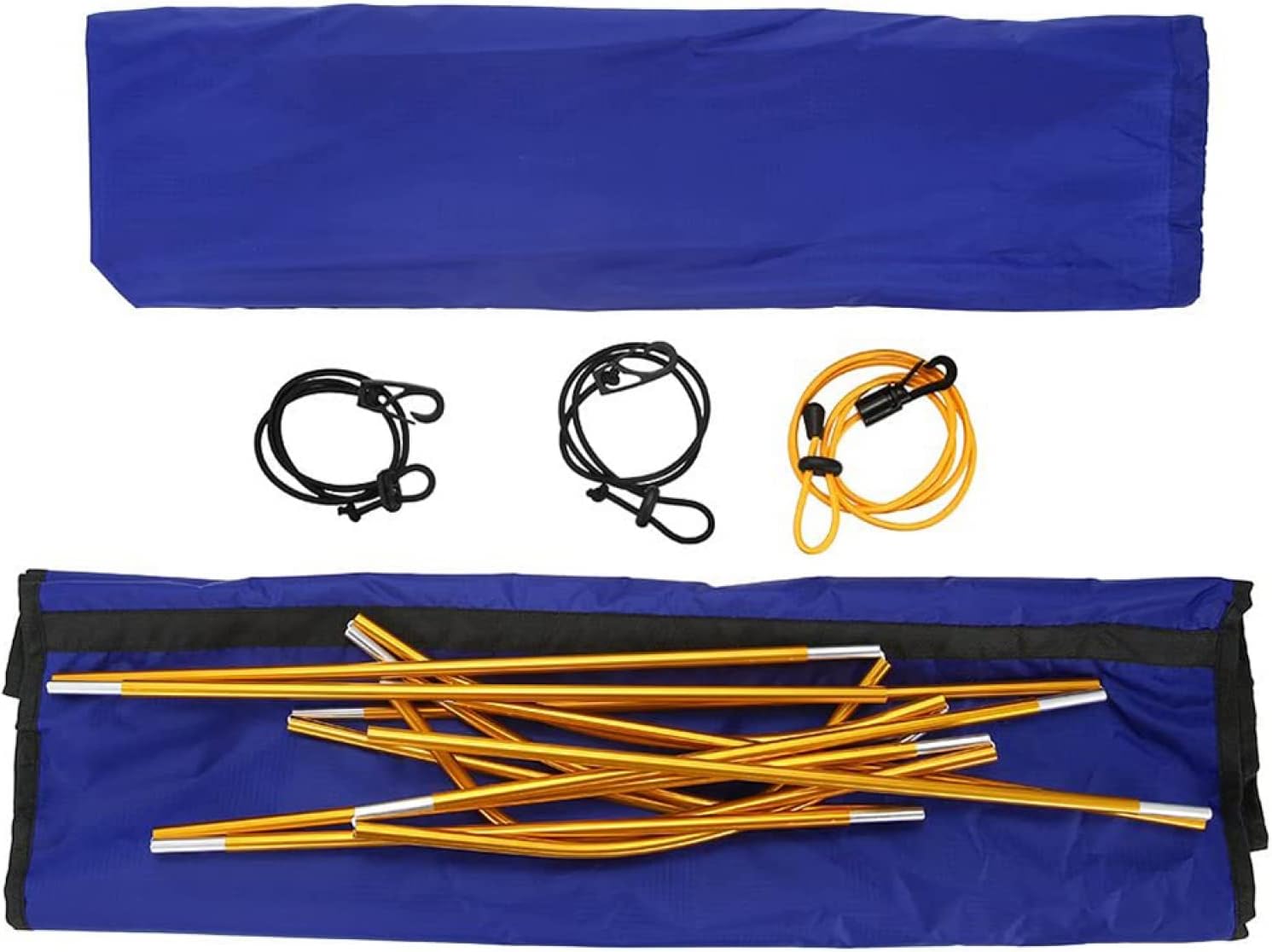 Made of ripstop, water repellent Oxford cloth and shock cord aluminum rods. Compact and lightweight when folded, it is easy to carry along with the storage bag. This upgraded model, compared with the old model, has been upgraded in height from the original 90 to the current 110cm.