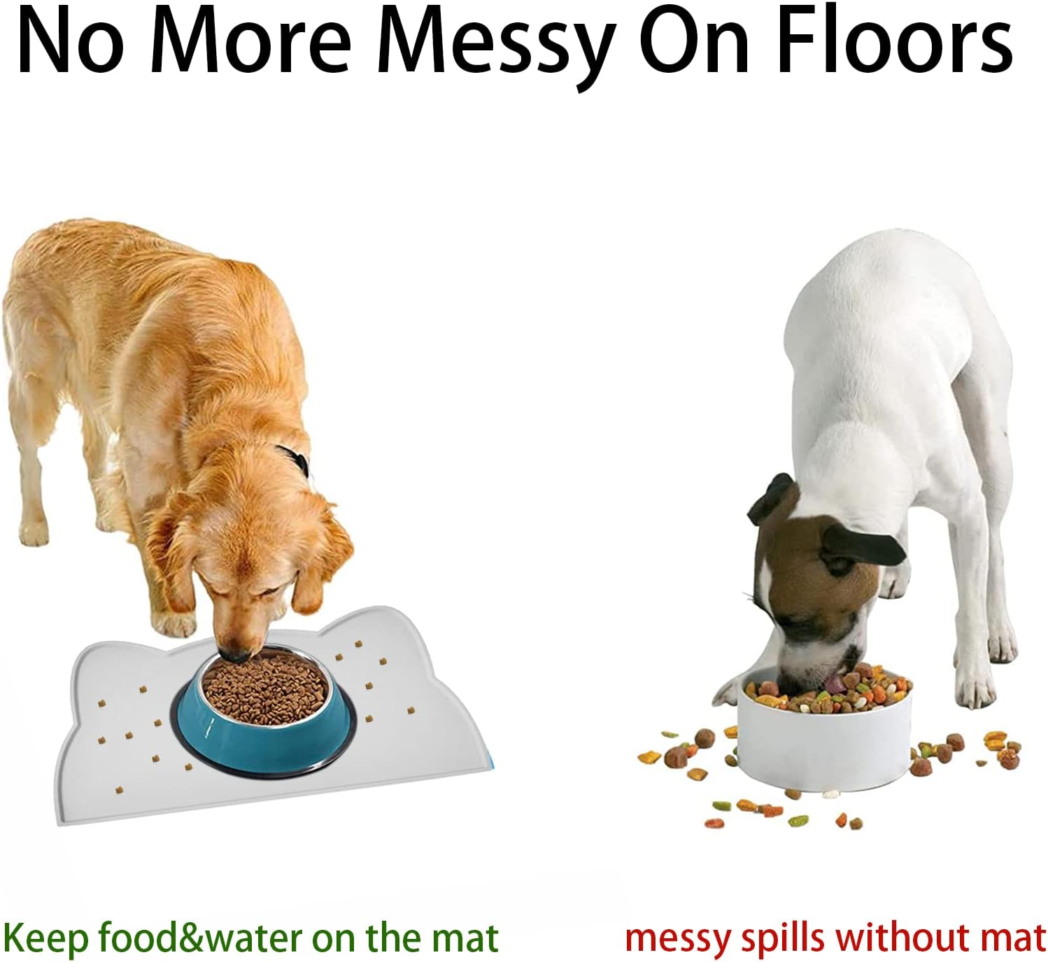 Cat Food Mat, Silicone Pet Feeding Mat for Floor Non-Slip Waterproof Dog Water Bowl Tray Cushion (17″ x 10″, Light Gray)