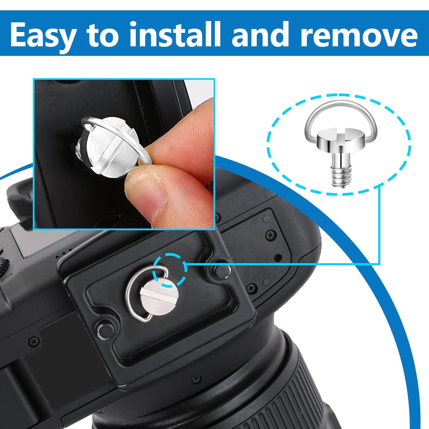 cobee 5 Pcs 1/4″ Camera Tripod Screw, Stainless Steel Thread D-Ring Camera Screws, Quick Release Camera Screw for Camera Tripod Monopod QR Plate