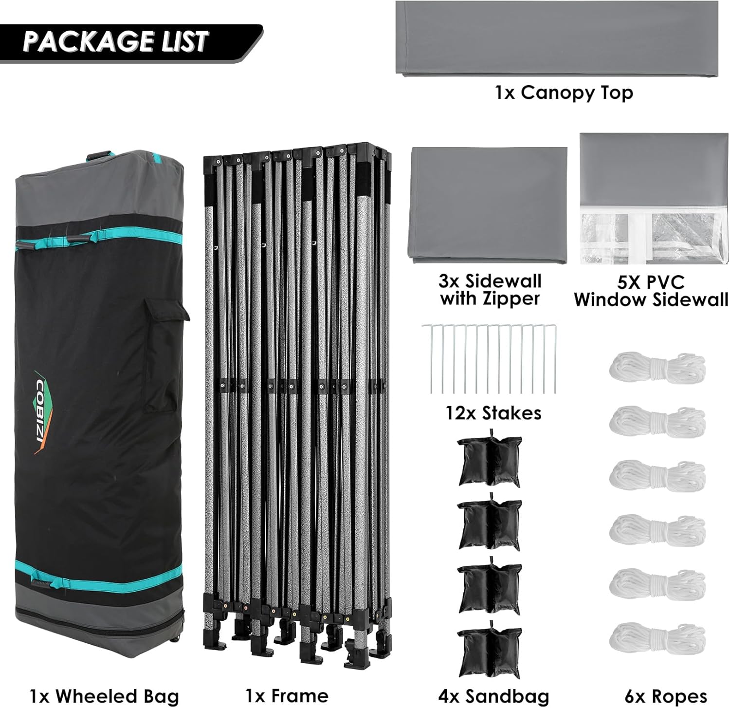 COBIZI 10×30 Pop up Canopy Tent 10×30 Canopy with Sidewalls, Heavy Duty Party Tent Tents for Parties, Foldable UPF 50+ Waterproof Commercial Ez up Canopy with Roller Bag, Grey(Windproof Upgraded)