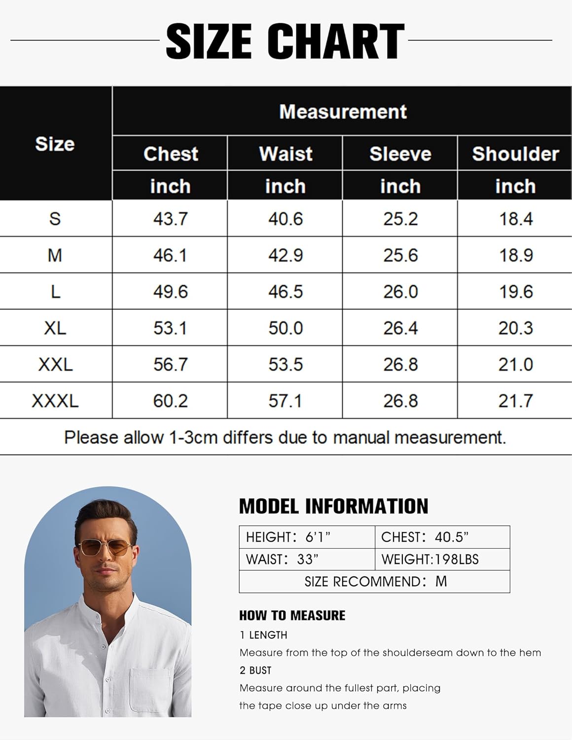 COOFANDY Men’s Long Sleeve Linen Shirt Band Collar Button Down Shirts Oxford Dress Shirt
