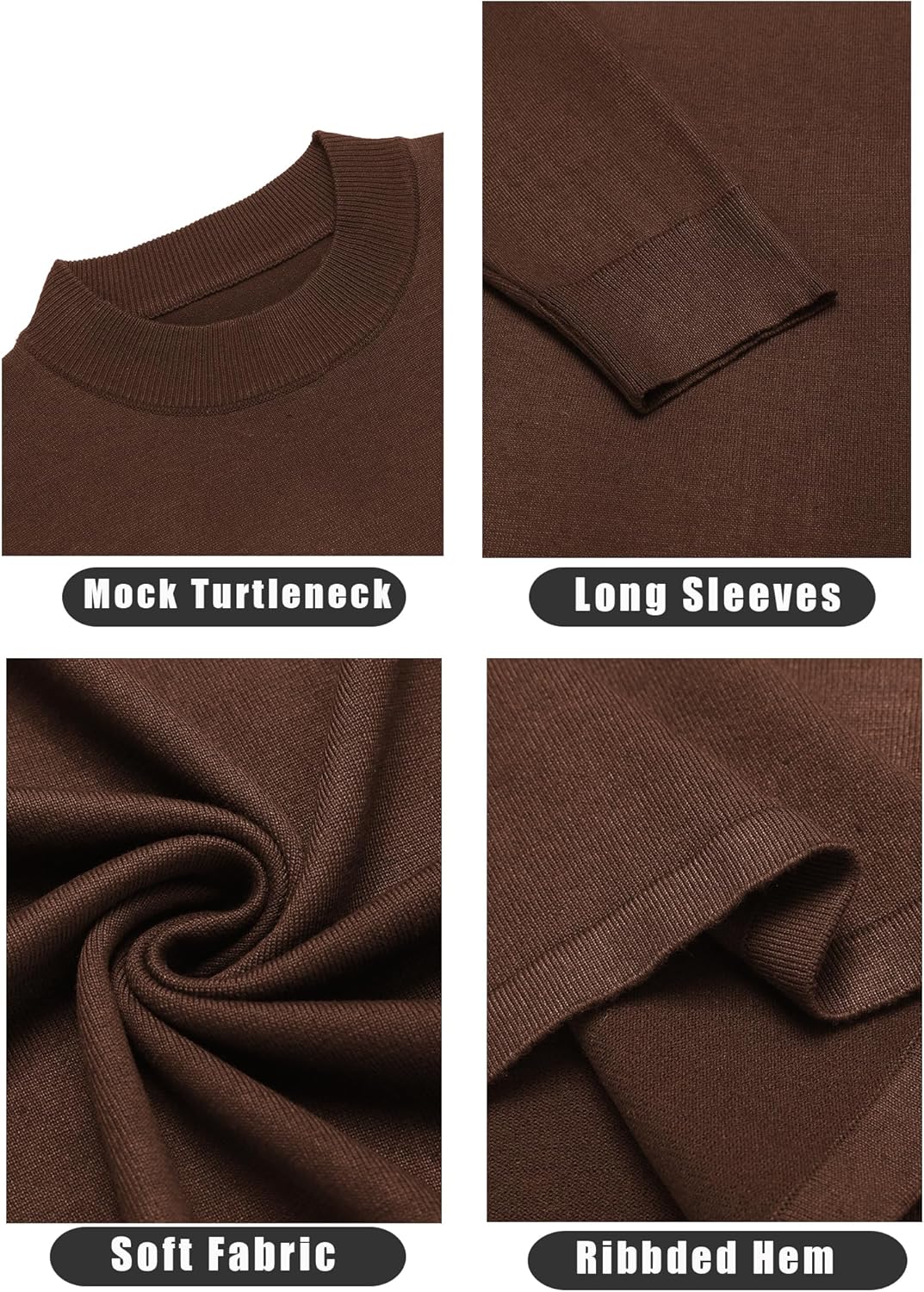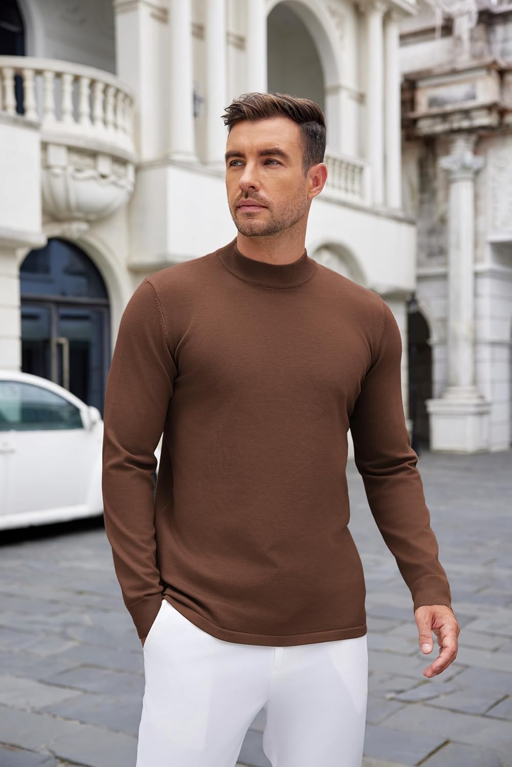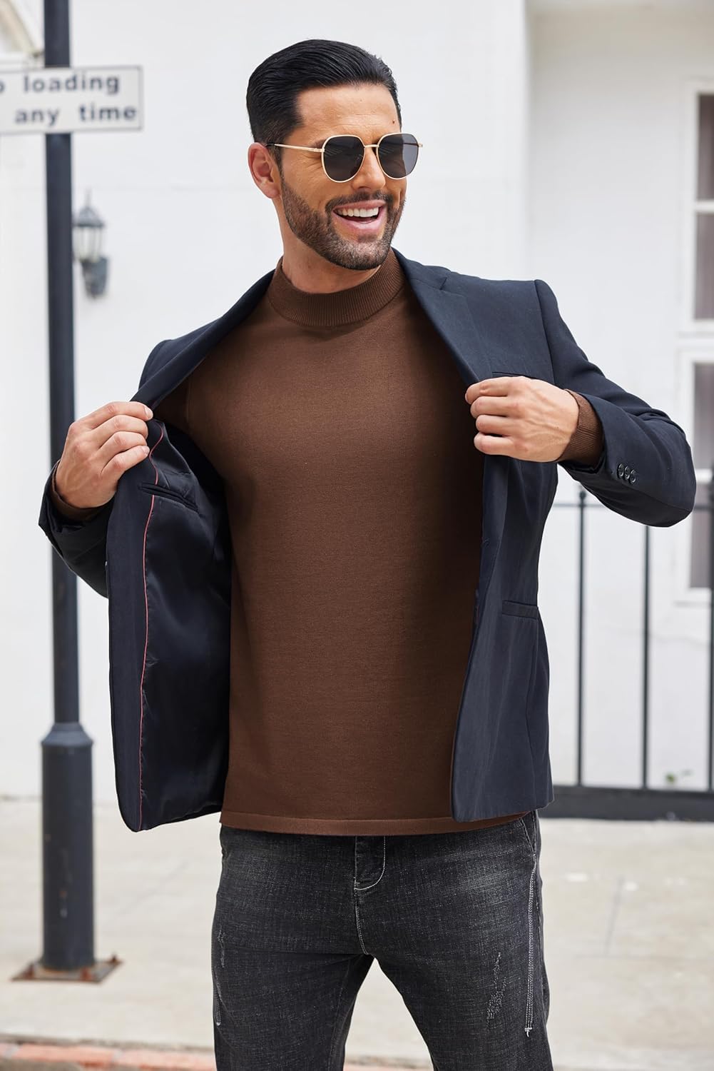 COOFANDY Men’s Mock Turtleneck Long Sleeve T Shirts Basic Casual Knitted Half Neck Thermal Lightweight Pullover Sweater