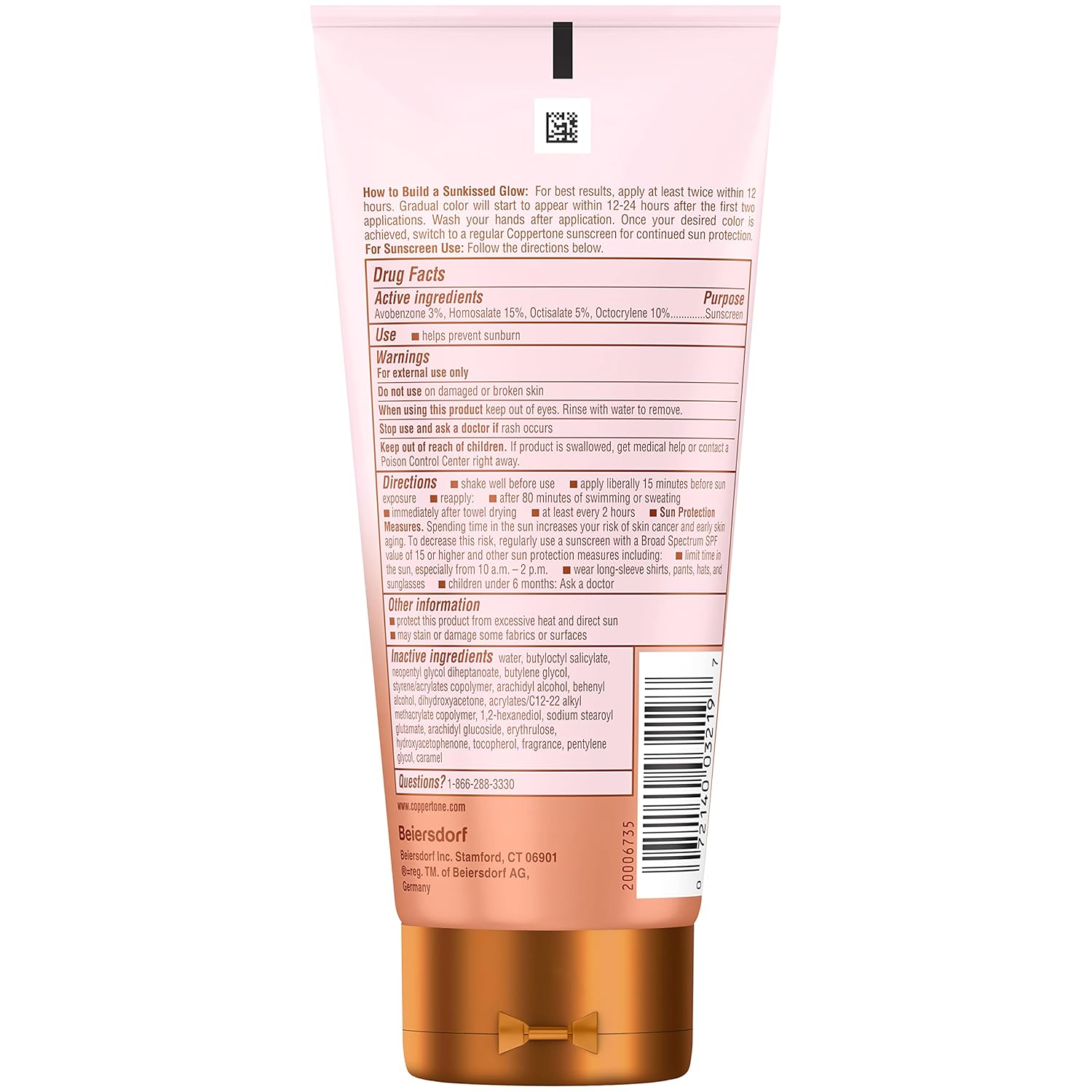 Free Of: Coppertone Glow Protect and Tan Sunscreen Lotion is free from oxybenzone, octinoxate, dyes and PABA
