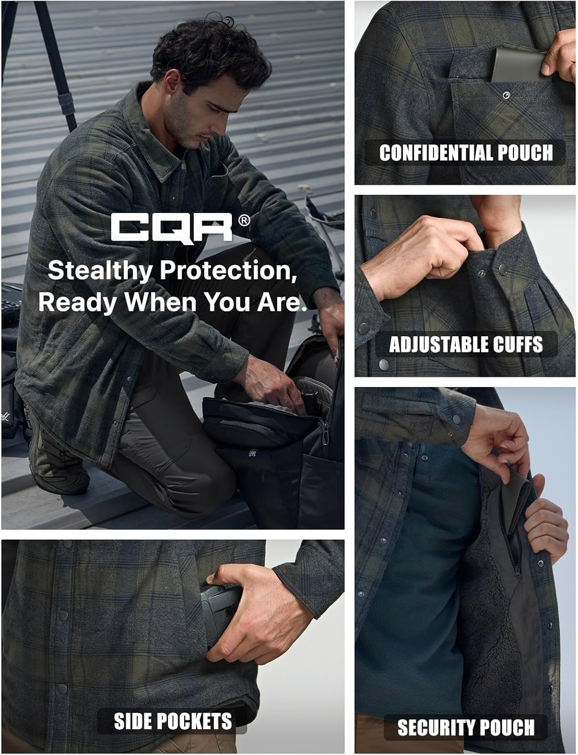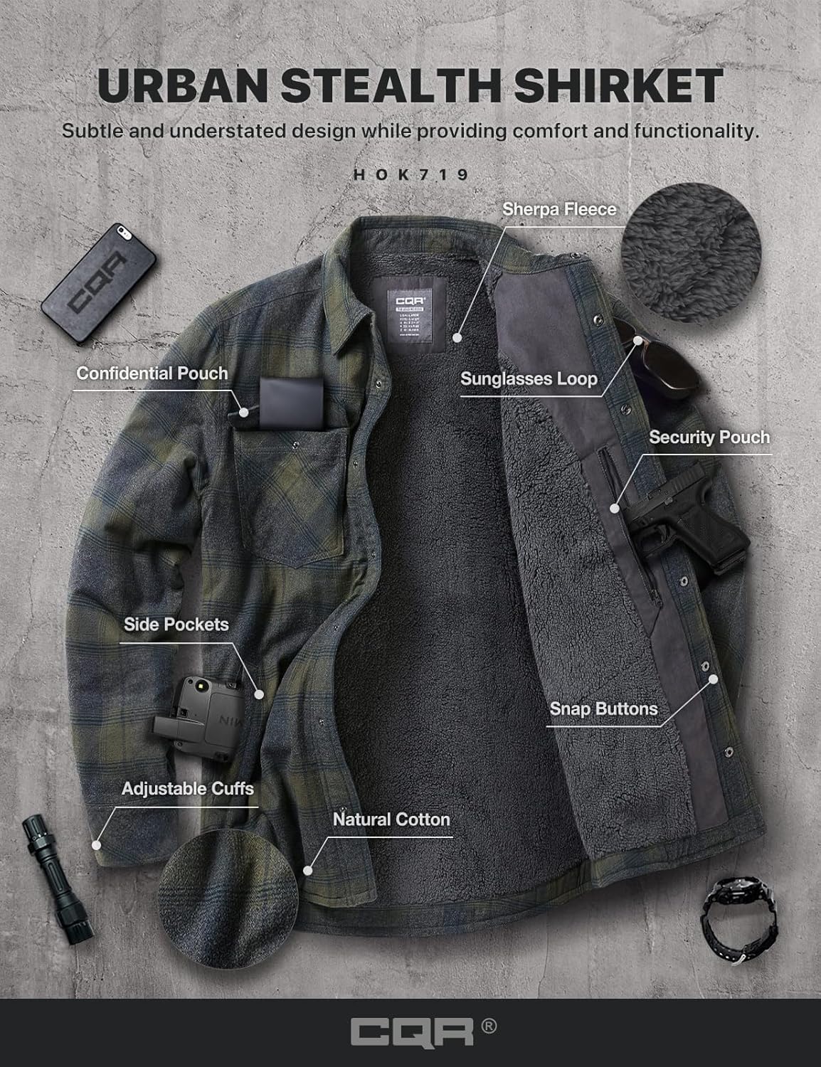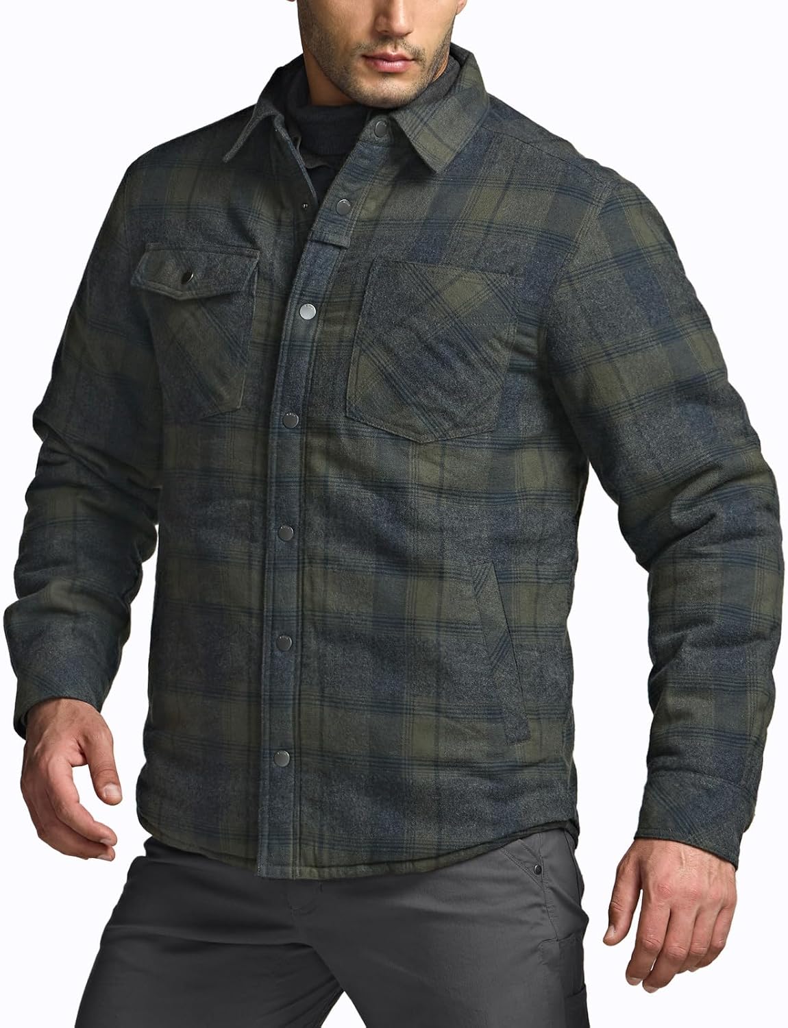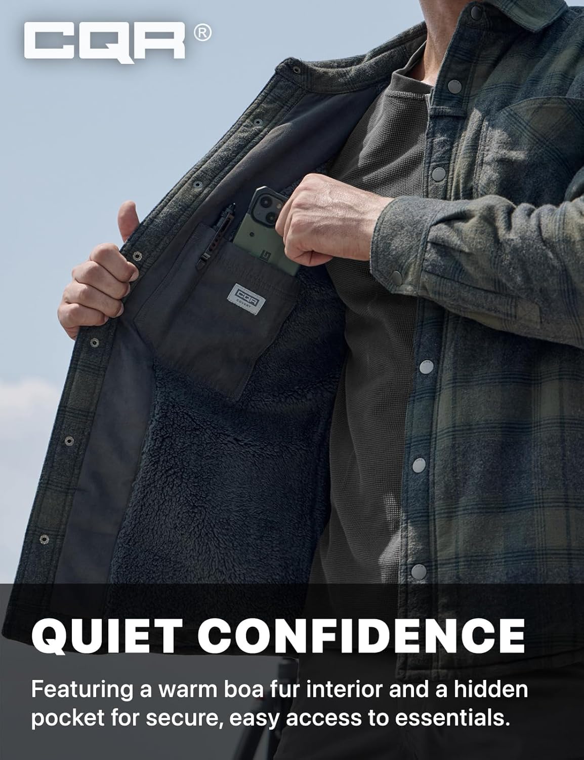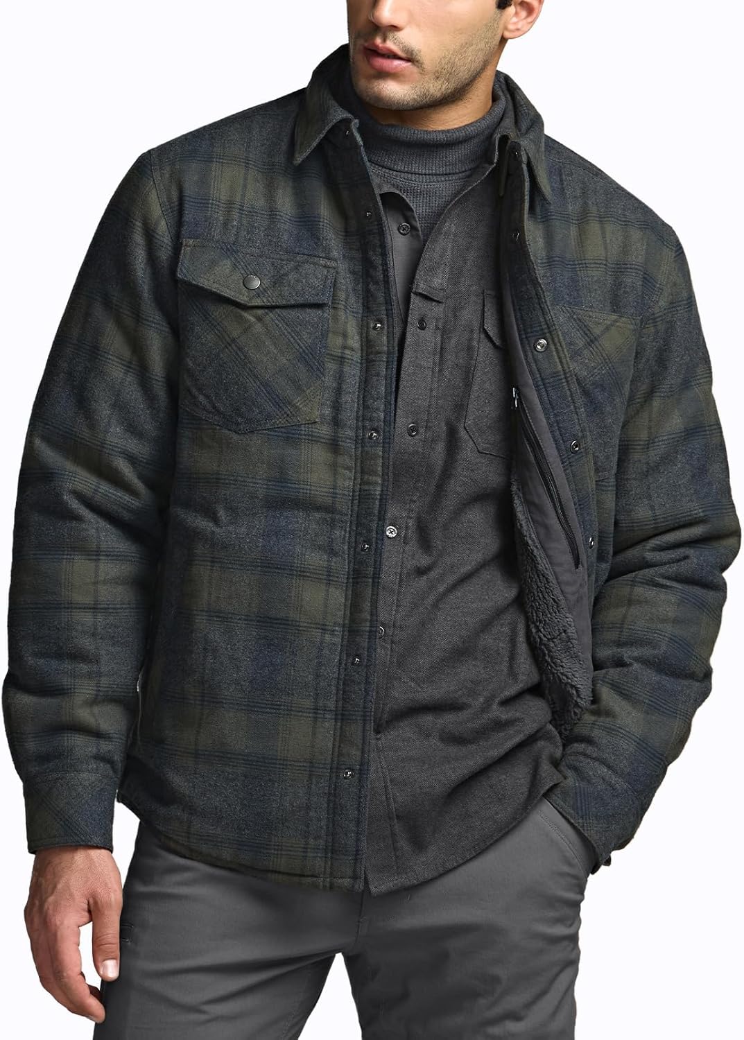CQR Men’s Plaid Flannel Shirt Jacket, Long Sleeve Soft Warm Sherpa/Quilted Lined Jacket, Outdoor Button Up/Zip-Front Jacket