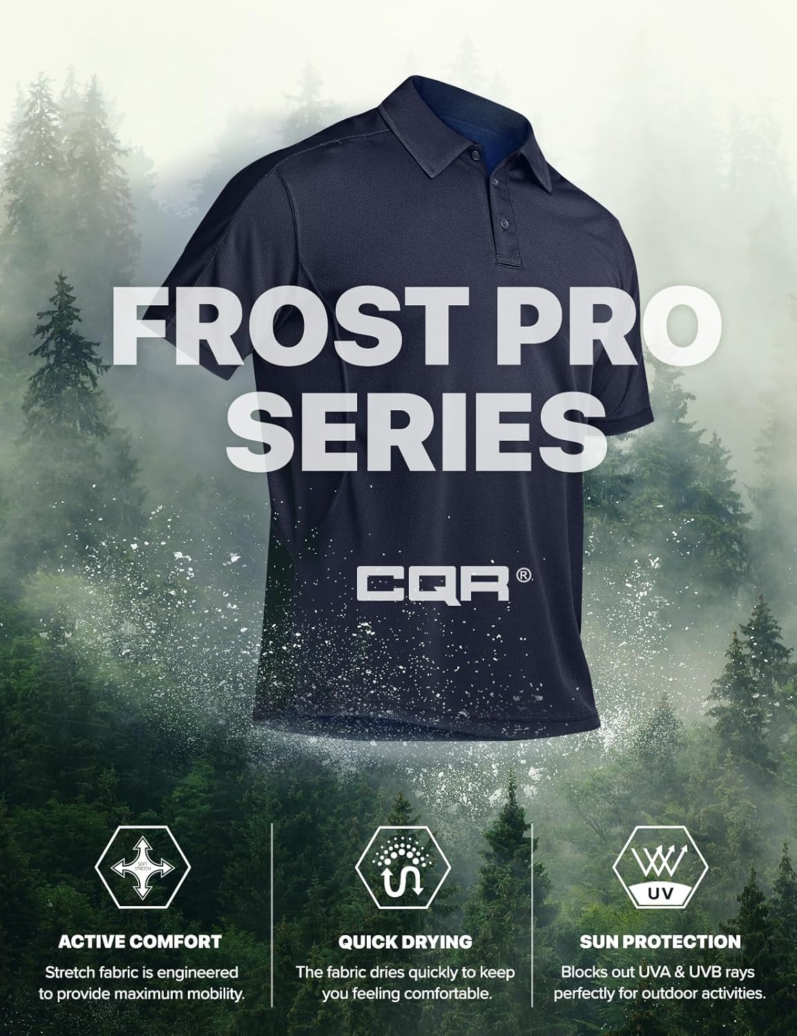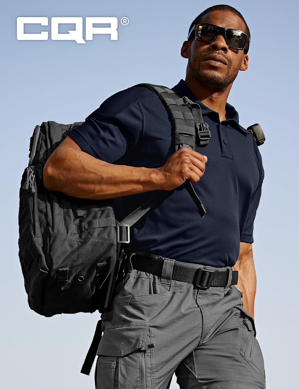 CQR Men’s Polo Shirt, Short Sleeve Tactical Shirts, Dry Fit Lightweight Performance Golf Shirts, Outdoor UPF 50+ Pique Shirt