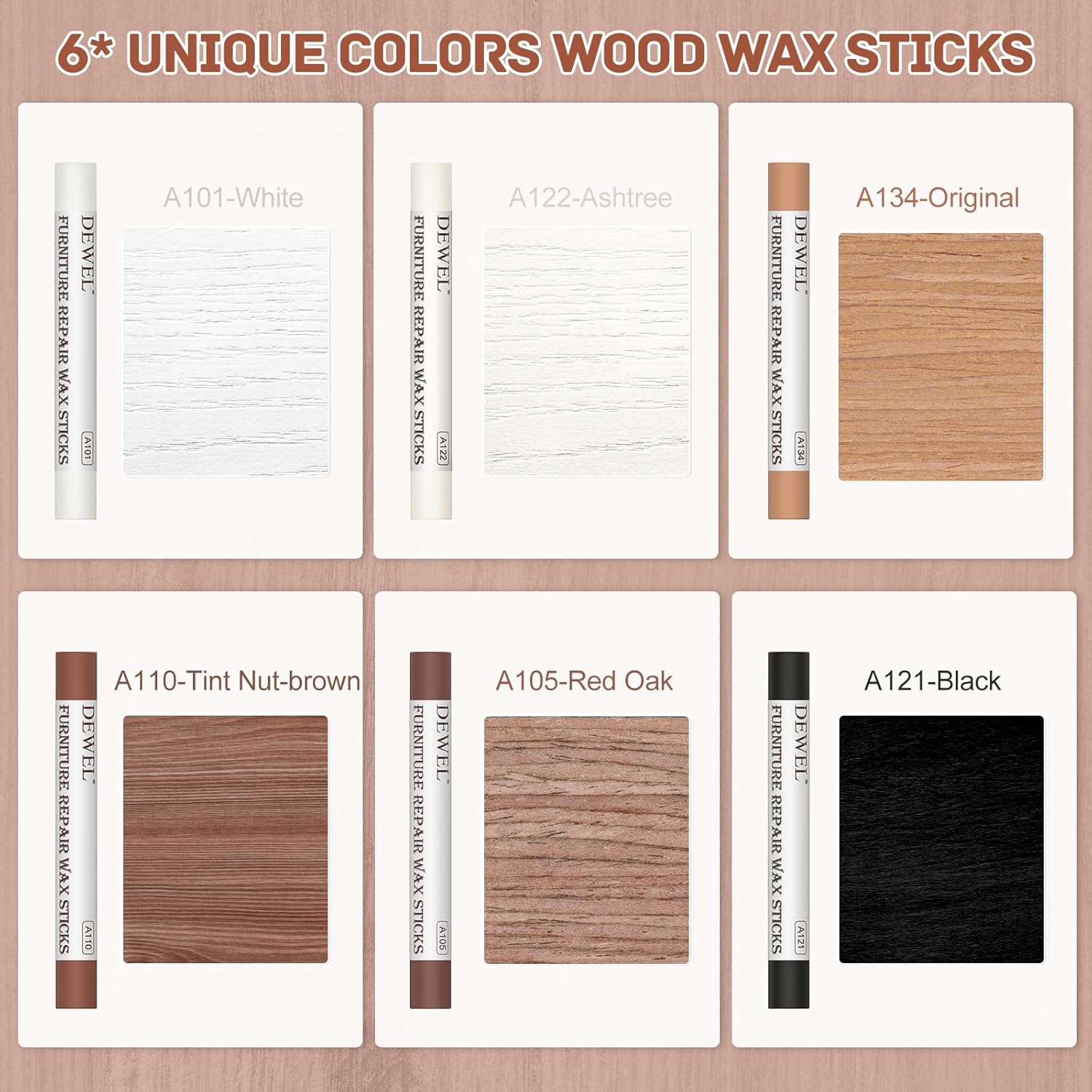 DEWEL Wood Filler Sticks, 6 Colors Wood Crayons for Scratches, Wood Floor Repair Wax Filler Sticks, Furniture Scratch Repair Crayons Kit for Wood Holes, Scratches, Table