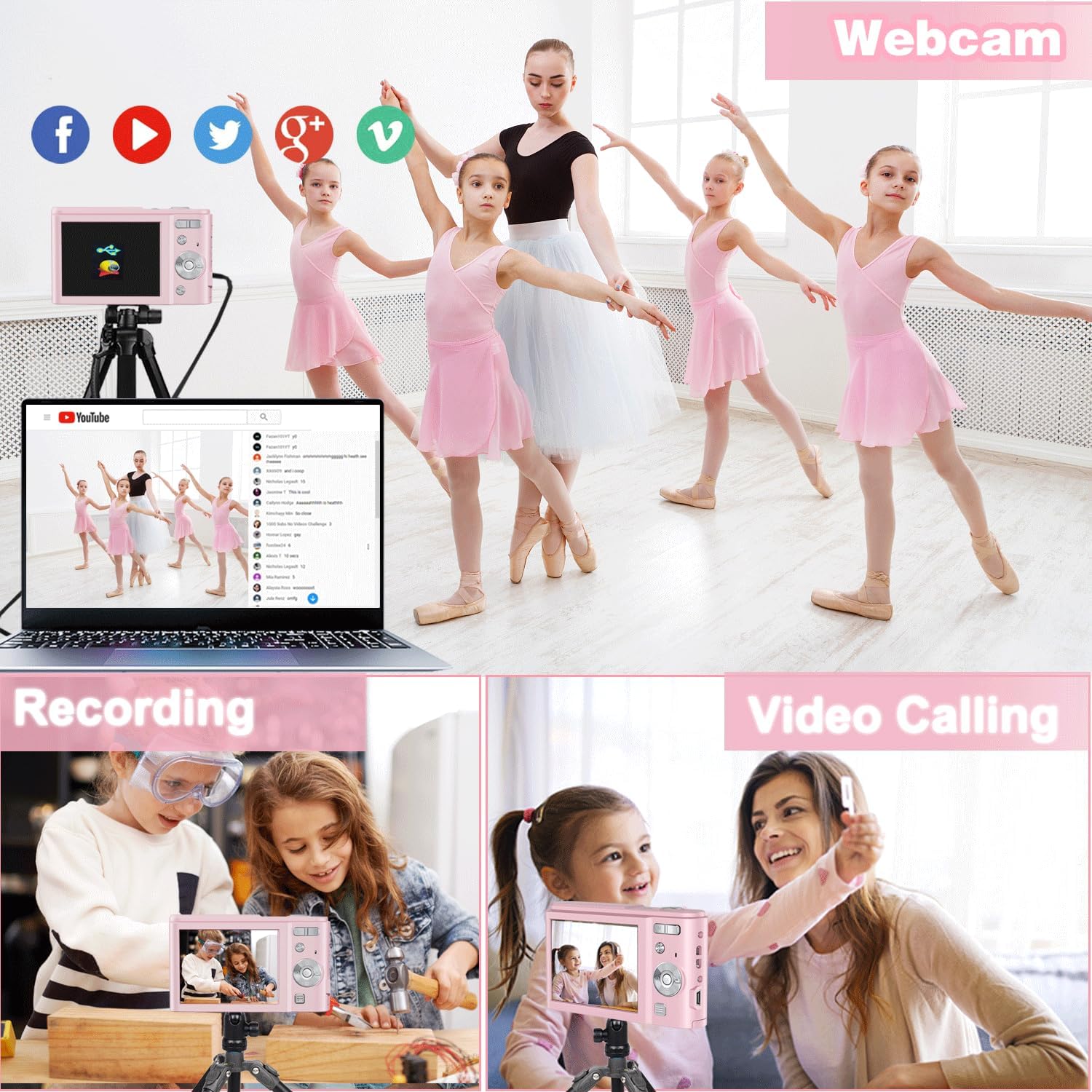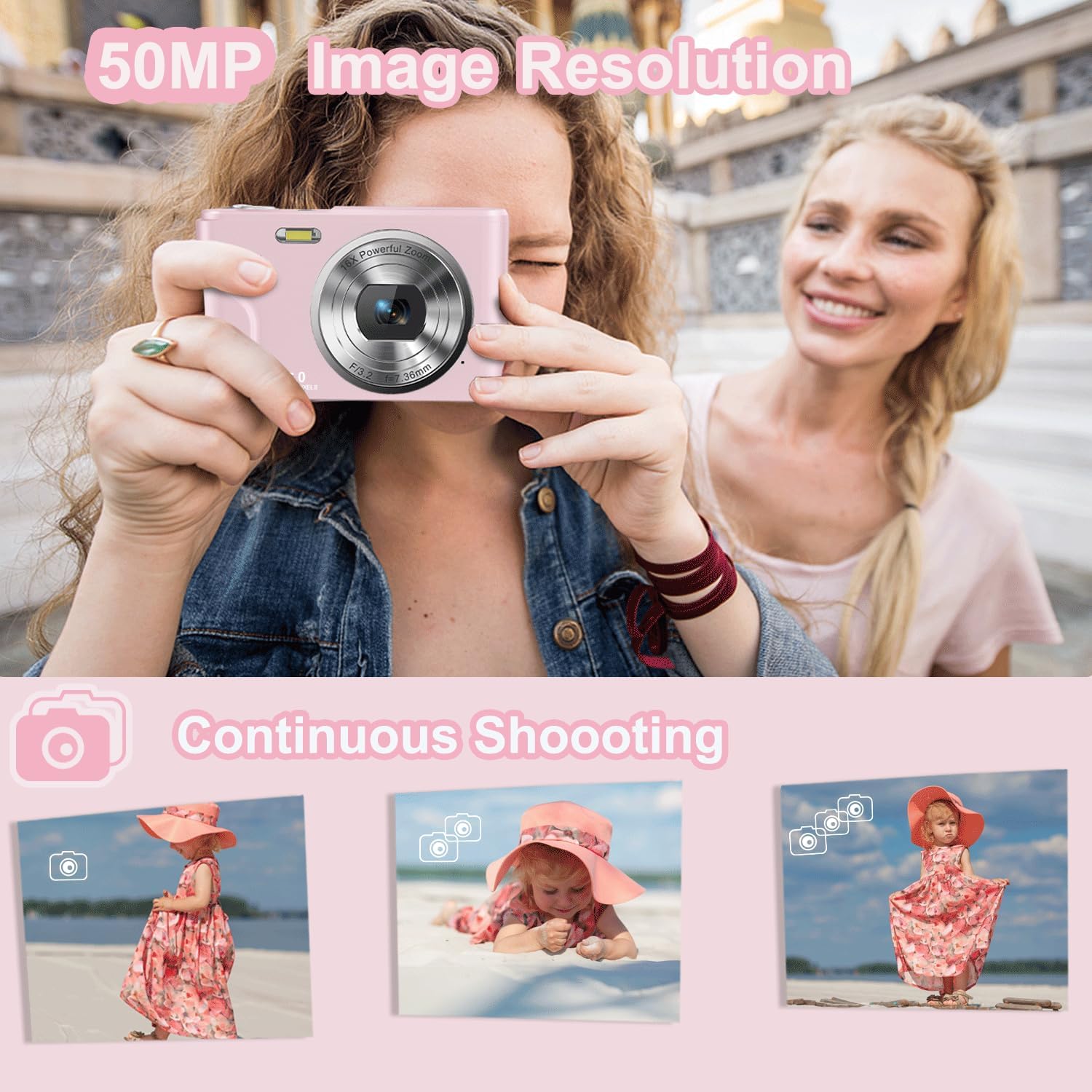 【Powerful Digital Camera for Kids】The digital camera equipped with a high-performance CMOS sensor, shooting photos up to 50MP images and record FHD 1080P videos to capture the most exciting moments in better image or video quality,enjoy clear detail and vivid moment.