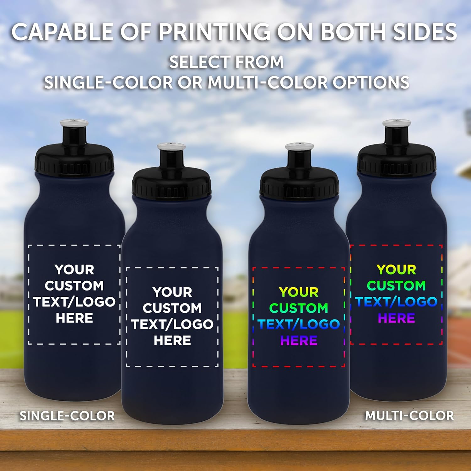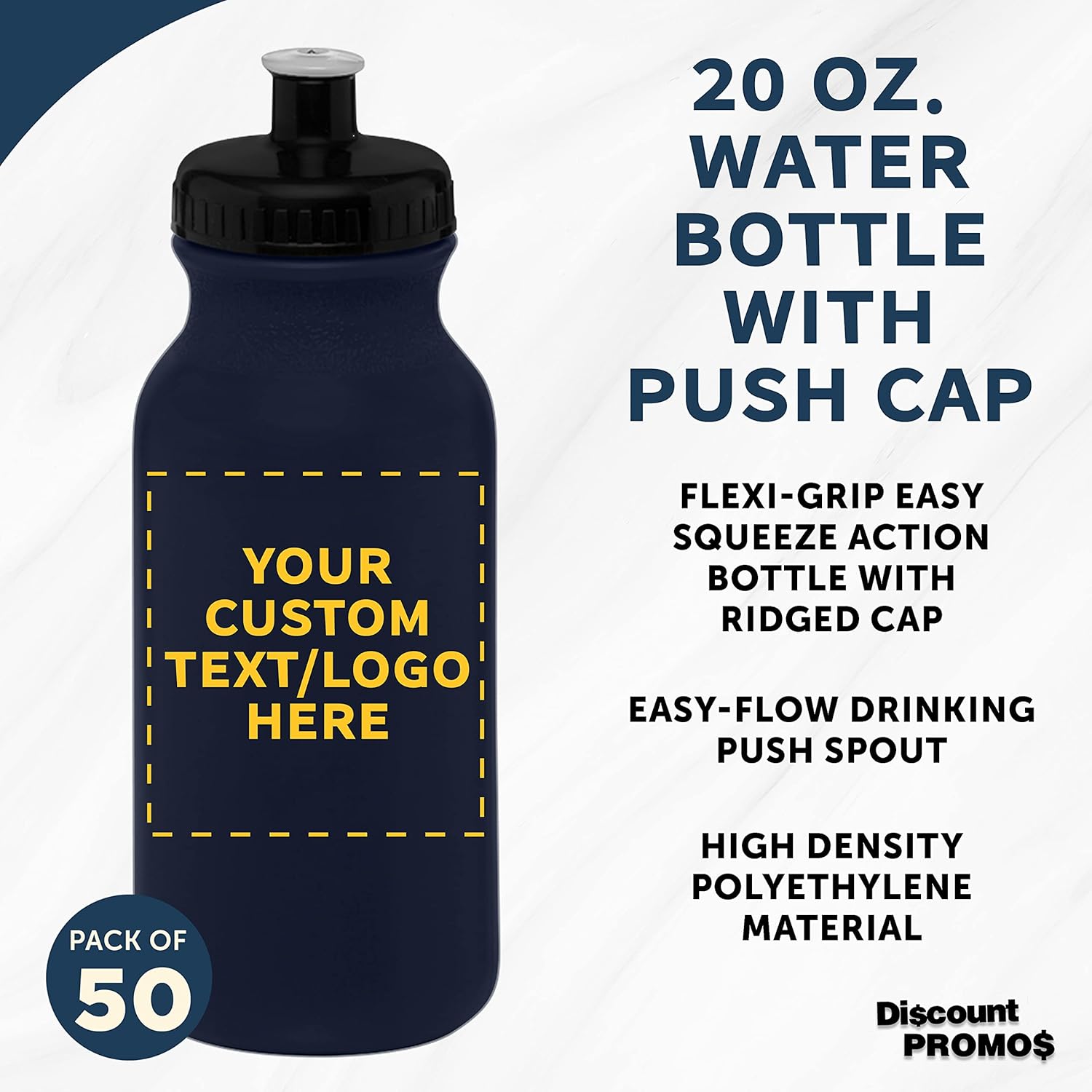 DISCOUNT PROMOS Custom 20 oz. Water Bottles with Push Cap Set of 50, Personalized Bulk Pack – Perfect for Gym, Hiking, Camping, Outdoor Sports – Navy Blue