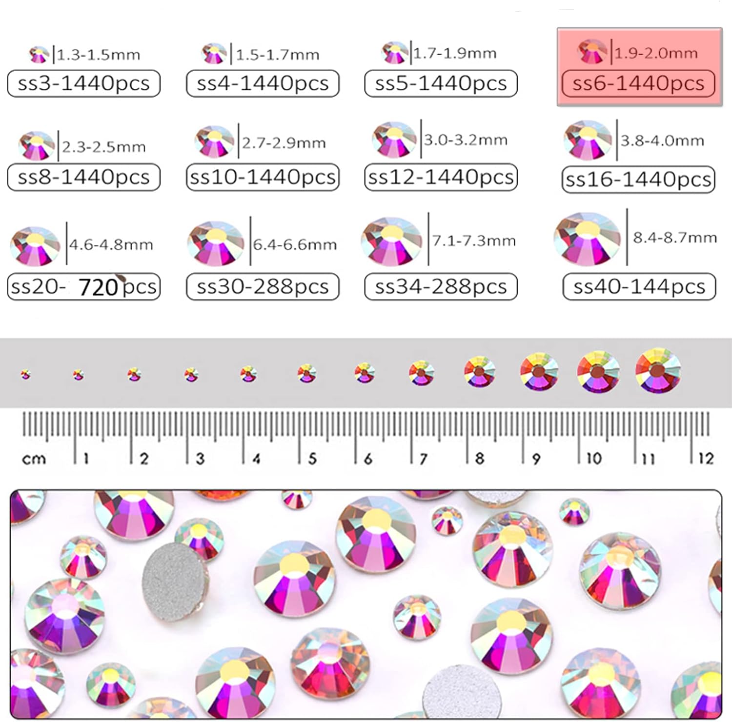 ▲ Size and Quantity: These SS6 flatback rhinestones are tiny, with diameter 2.0mm, you will receive 1440Pieces. They are swarovski alternative premium quality flatback rhinestones, ideal for nail art.