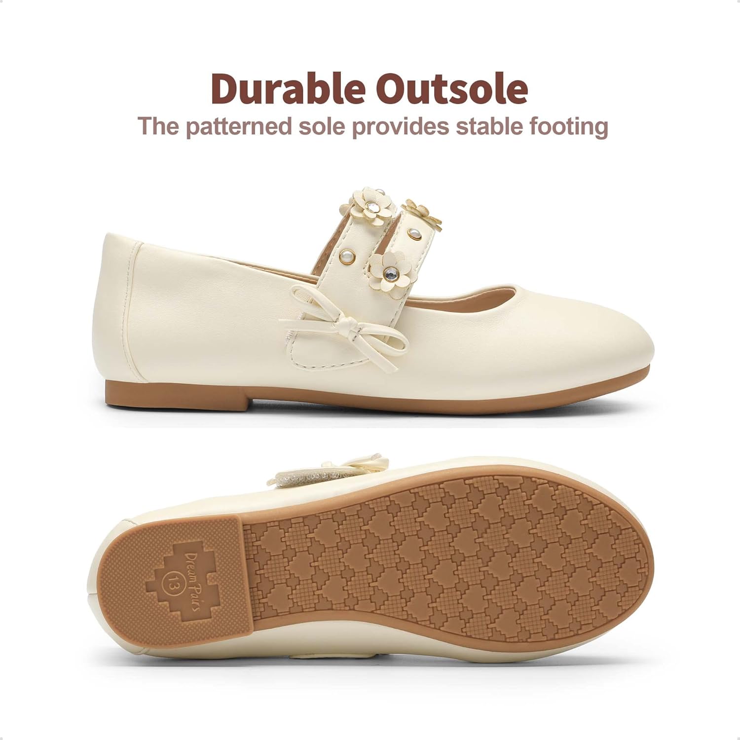 DREAM PAIRS Flower Girl Ballet Flats Pearls Bow Ballerina Mary Jane Dress Shoes