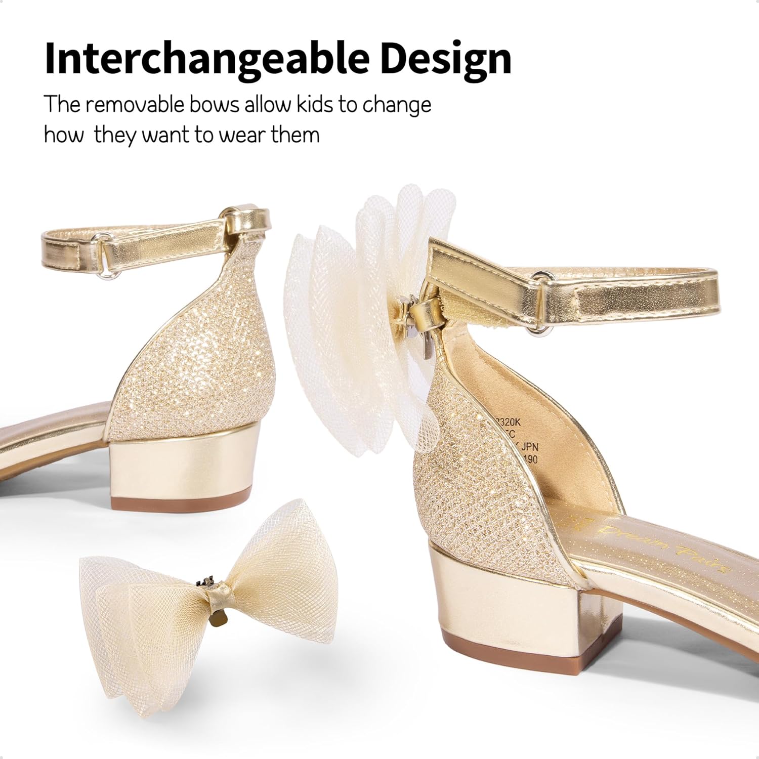 DREAM PAIRS Girls Sandals Low Heel Dress Pump Ankle Strap Interchangeable Bow Flower Wedding Party Shoes for Little Kid/Big Kid