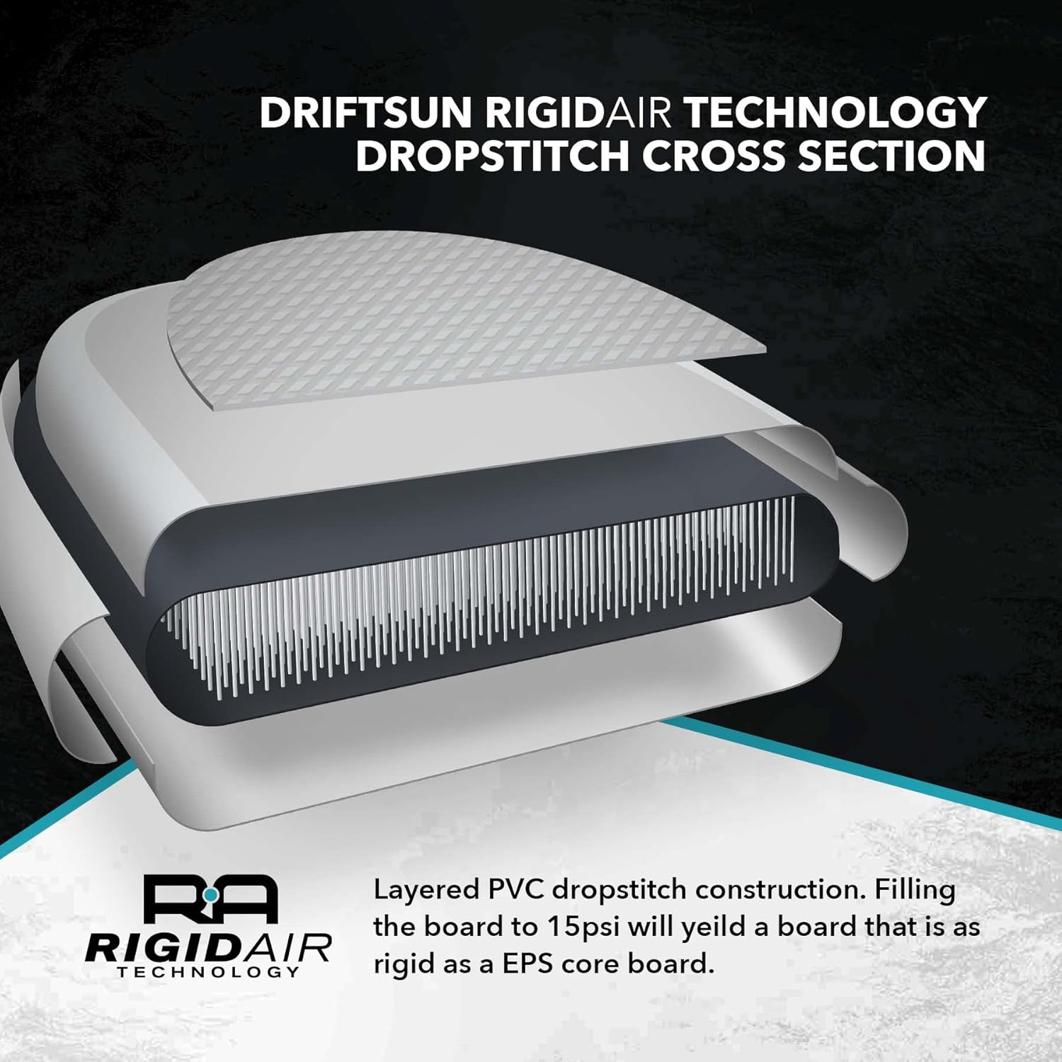 Once your adventure winds down, simply deflate, roll up and store your board for the next one. This lighter, stiffer and more durable iSUP packs down neatly with all accessories into the included deluxe travel backpack. When deflated the Driftsun Balance measures 11” x 36” and weighs only 25 lbs for ultimate portability.