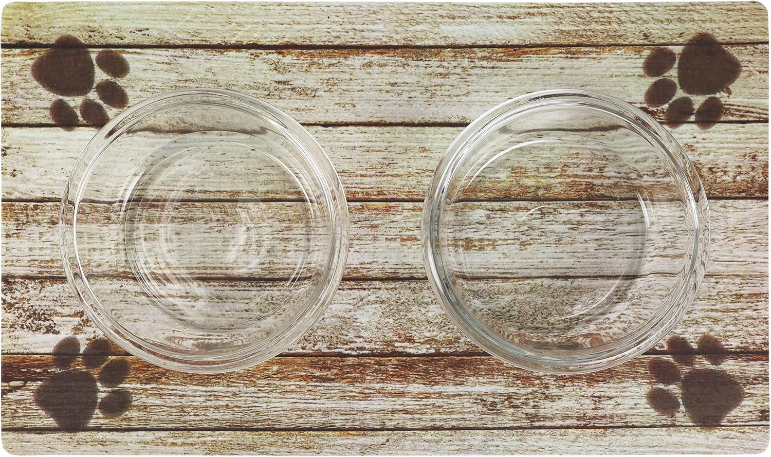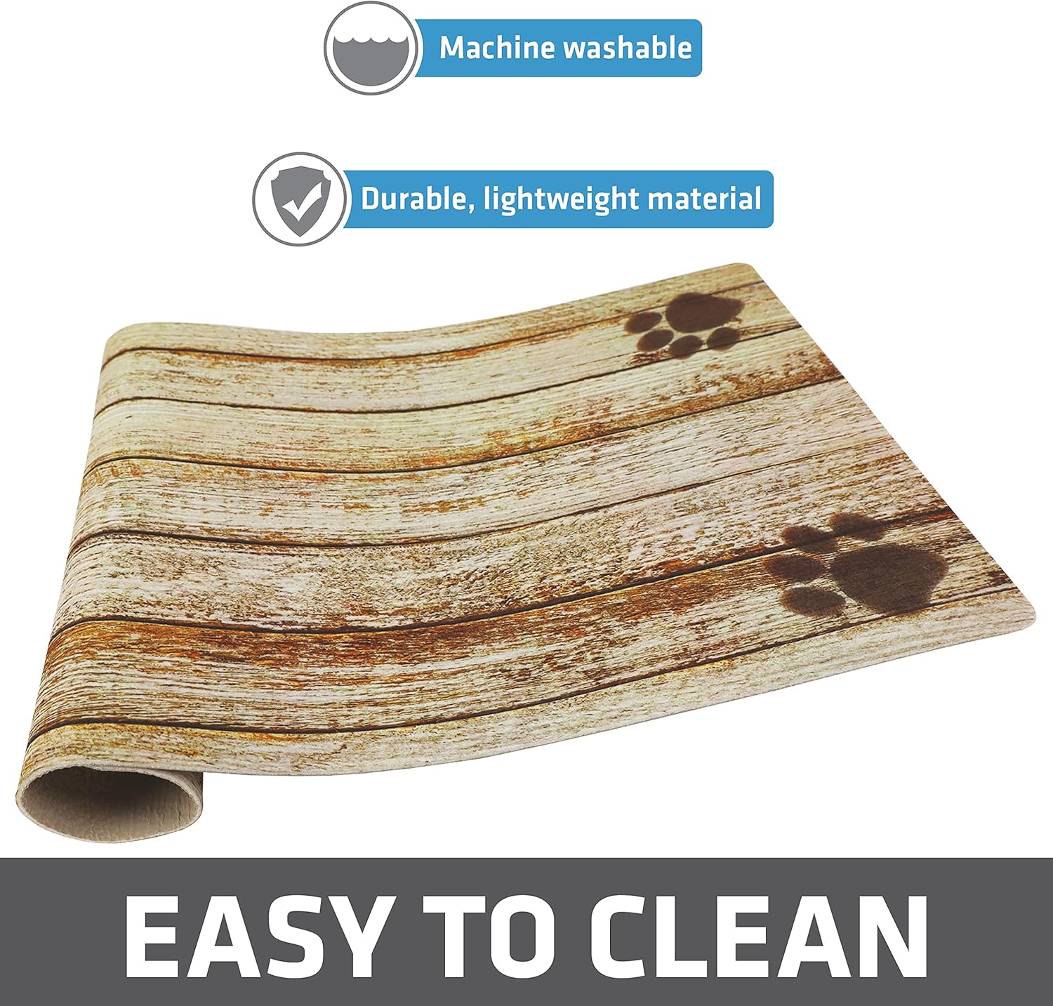 Drymate Pet Bowl Placemat, Dog & Cat Food Feeding Mat – Absorbent Fabric, Waterproof Backing, Slip-Resistant – Machine Washable/Durable (USA Made) (12” x 20”) (Distressed Wood Tan)